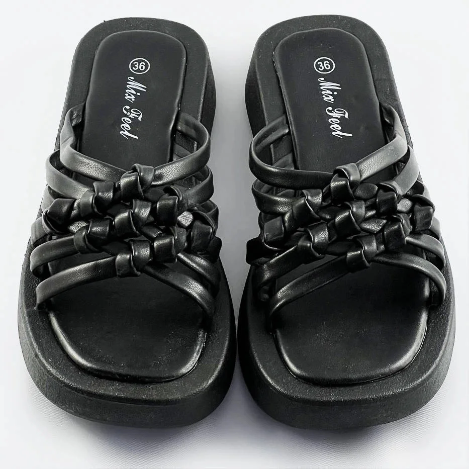 Přidání recenze k Černé dámské pantofle s plochou podrážkou (CM-59)