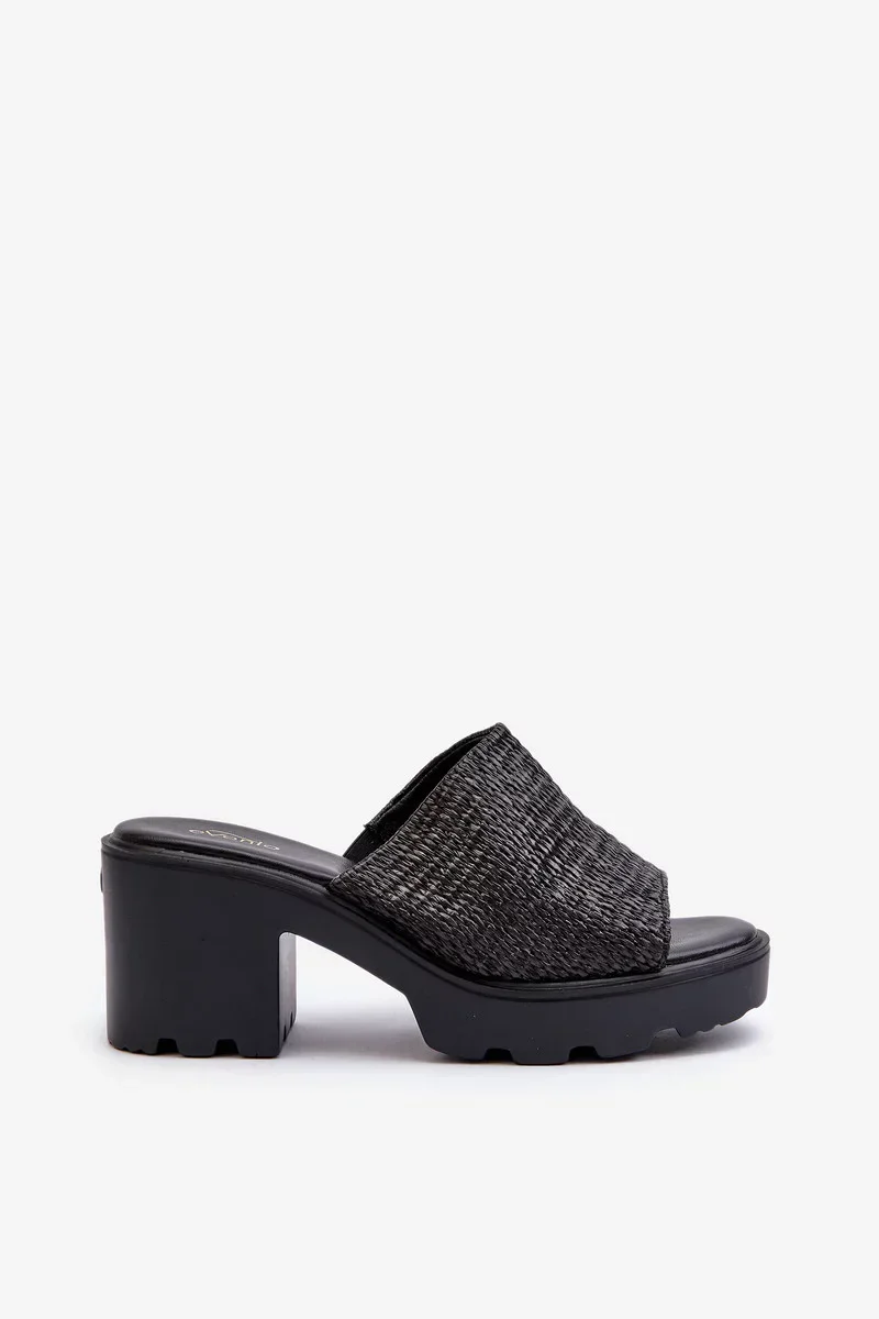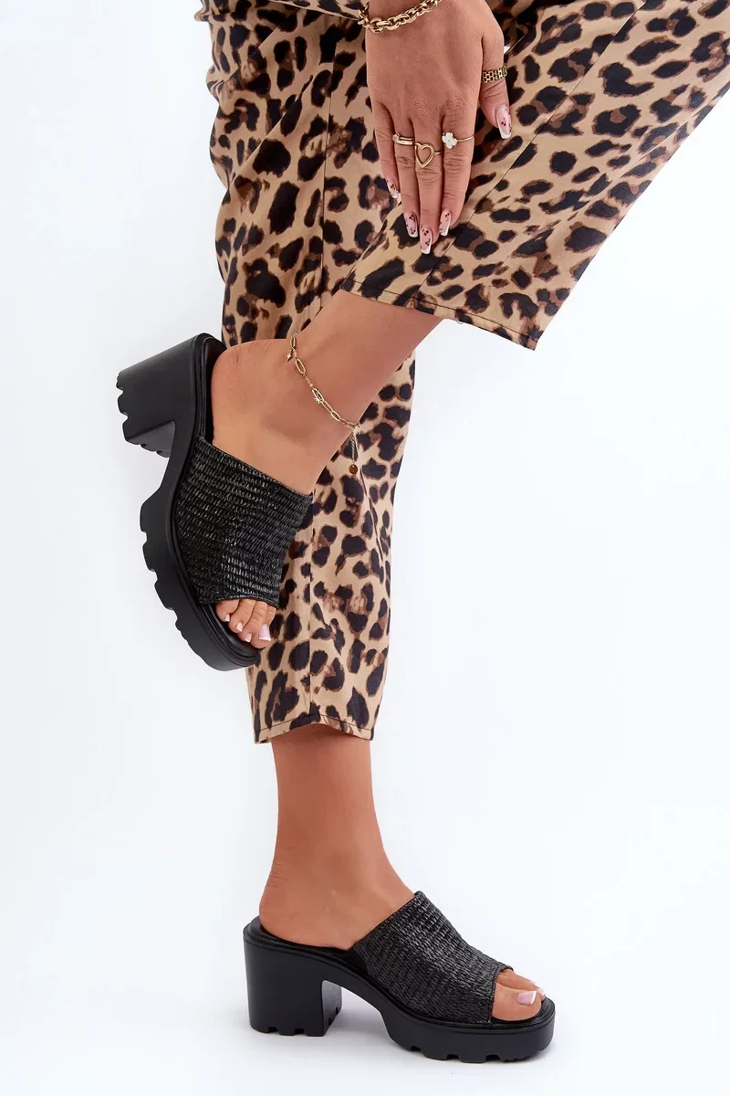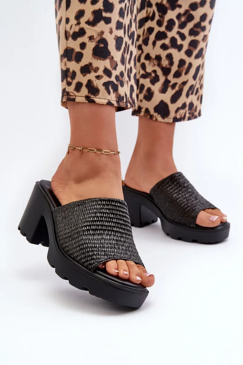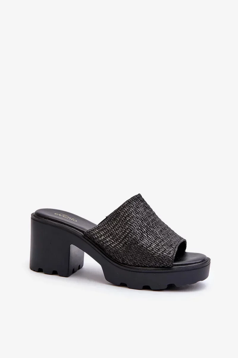 Černé dámské pantofle Titantha s pleteným vysokým podpatkem