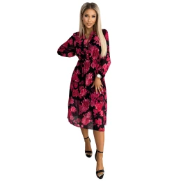 Přidání recenze k Černé dámské plisované midi šaty se vzorem s a s dlouhými rukávy model 21486658 - numoco basic