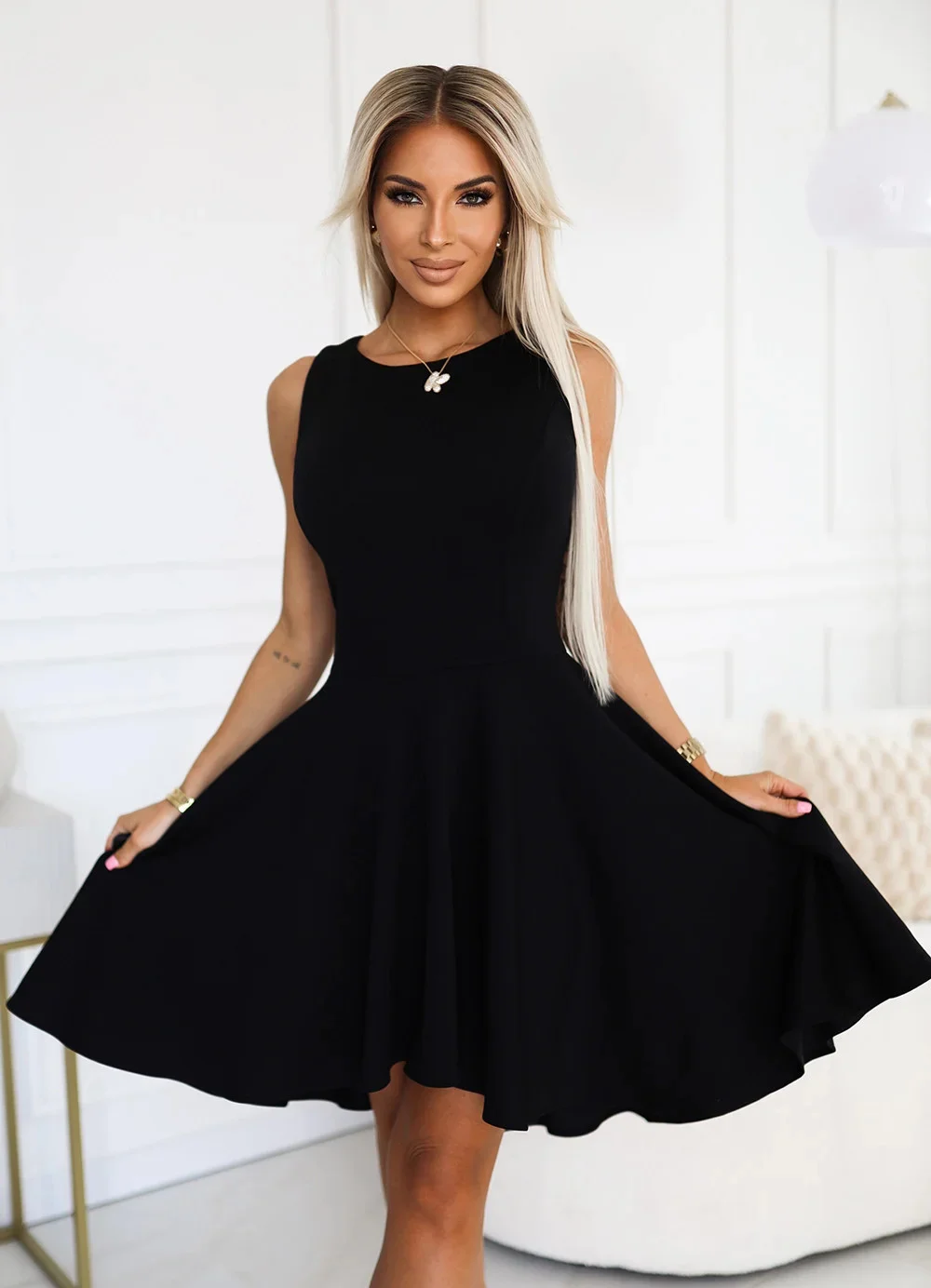 Přidání recenze k Černé dámské šaty s delším zadním dílem model 20681411 - numoco