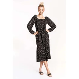 Šaty mají pružnou vrchní část. Dlouhé nadýchané nabírané rukávy jsou olemované gumičkou. Rukávy je možné nosit tradičně, nebo je možné je spustit. Spodní část modelu je rozšířená. Šaty mají délku do poloviny lýtek.