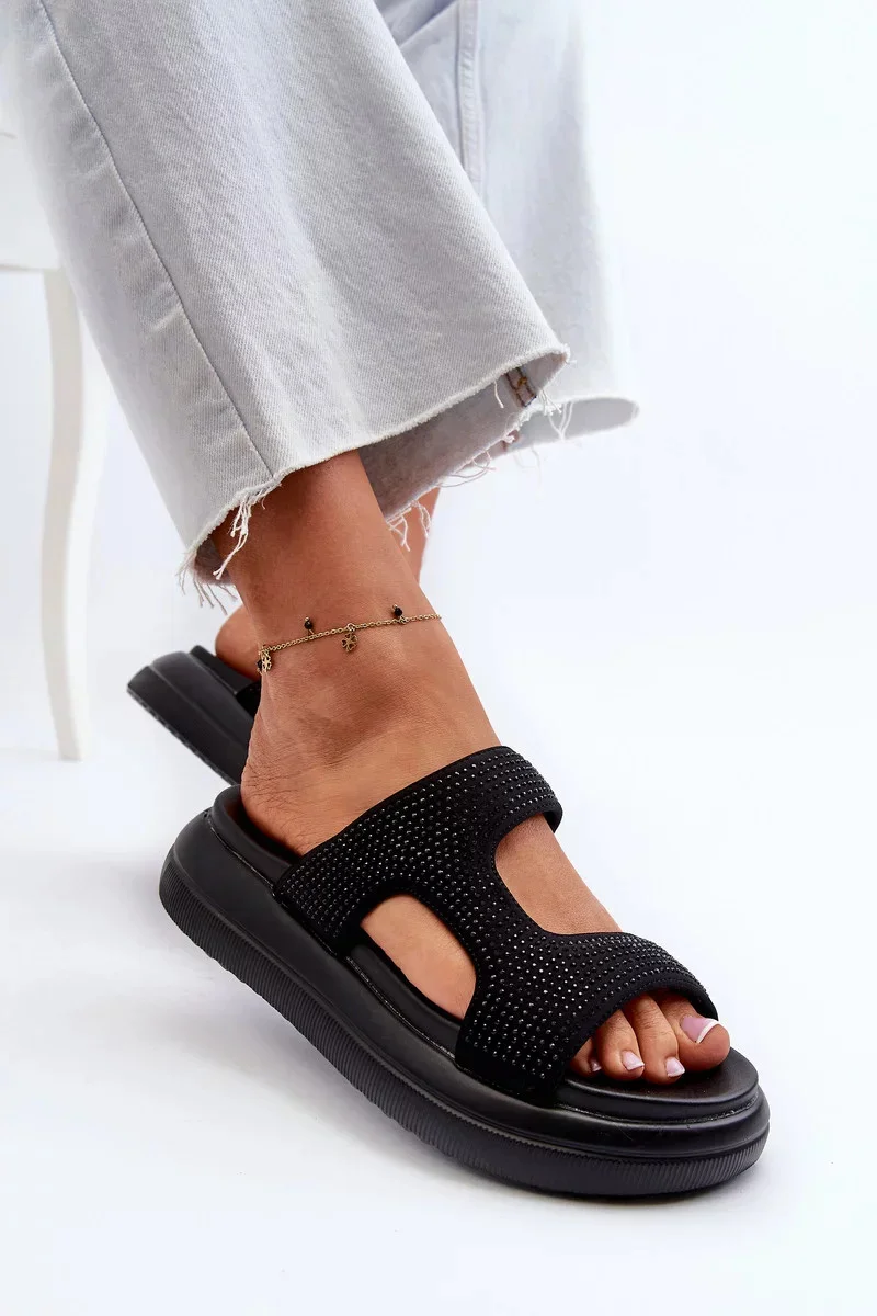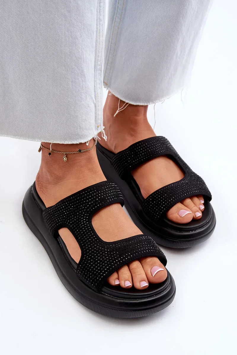 Přidání recenze k Černé dámské zdobené pantofle Jestella na platformě