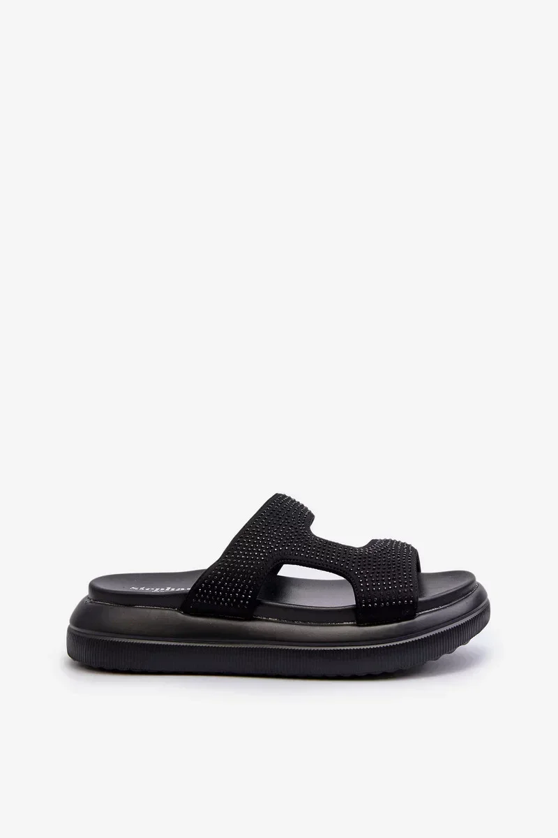 Černé dámské zdobené pantofle Jestella na platformě