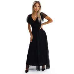 Černé dlouhé dámské šaty s výstřihem a krátkými rukávy model 20625782 - numoco basic