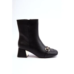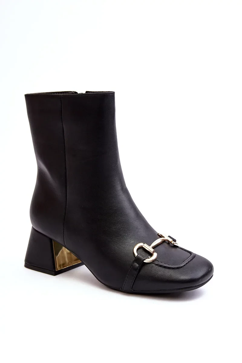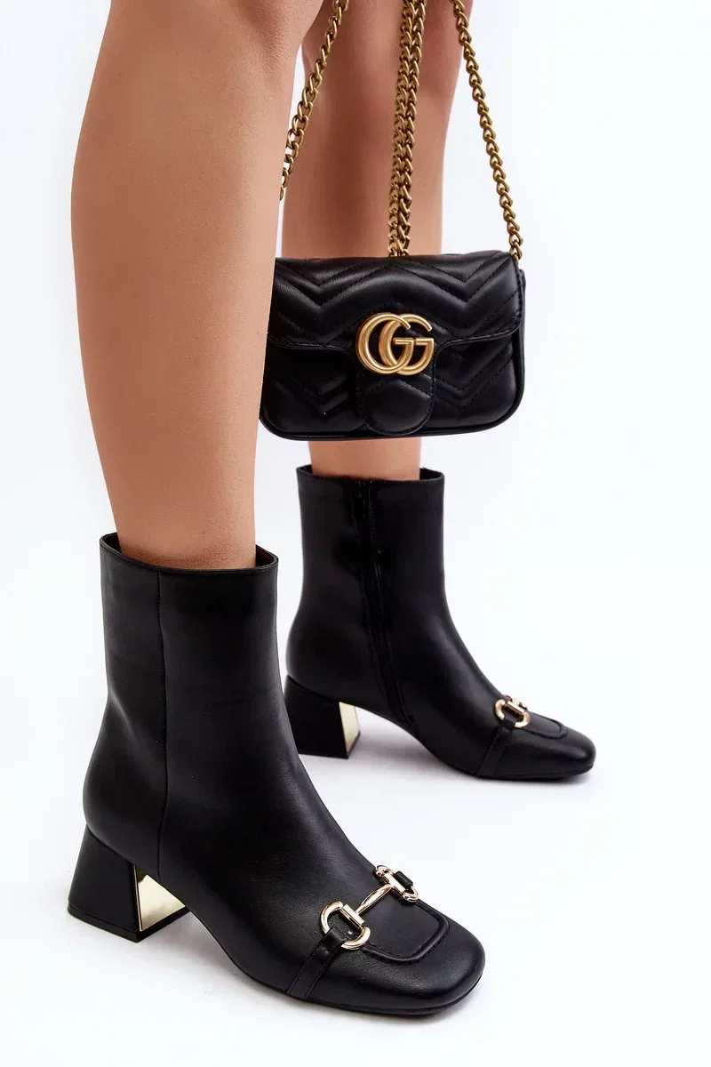Černé kotníkové boty Adinah na vysokém podpatku s ozdobou