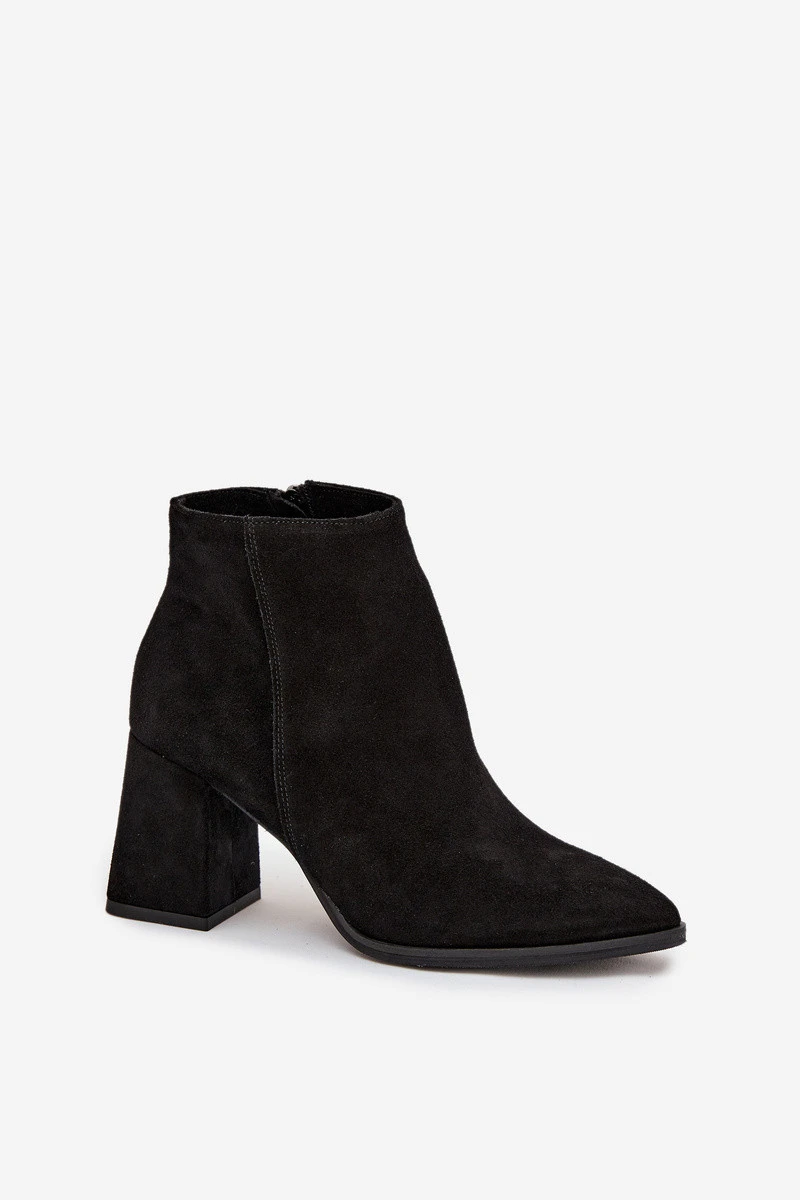 Černé kotníkové boty z přírodního semiše na jehlovém podpatku zateplené Zazoo 3128