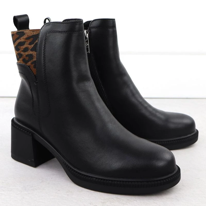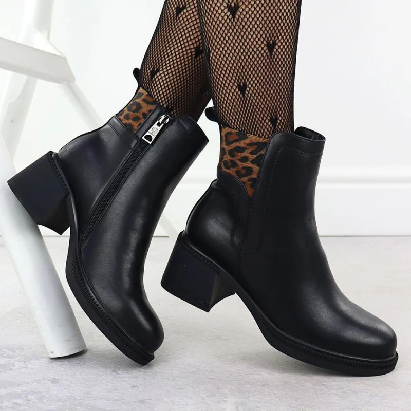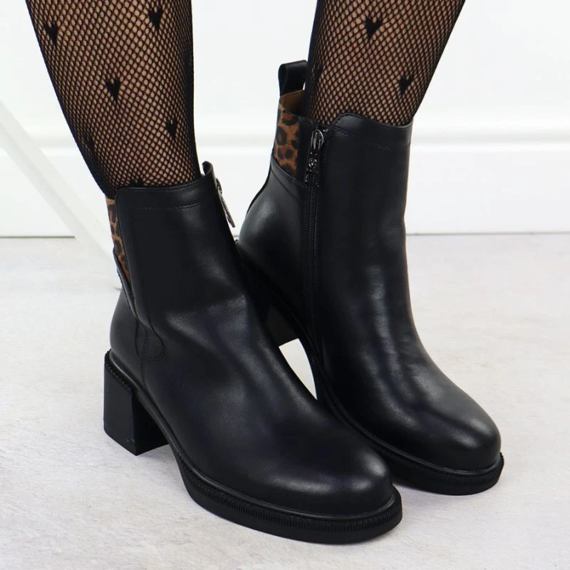 Černé kožené boty na jehlovém podpatku model 21905469 - VINCEZA