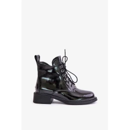 Lakované kotníkové boty vyrobené z přírodní kůže jsou elegantní a módní volbou pro chladnější dny. Zabudované na plochém podpatku, nabízejí pohodlí při nošení po celý den. Model má dvojité zapínání – šněrování a zip, což zajišťuje pohodlí a ideální přizpůsobení. Zaoblené špičky jim dodávají klasický charakter a vnitřek zateplený obuvnickou dekou zajišťuje teplo a pohodlí. Ideální na každý den, spojují eleganci s funkčností. Při výběru velikosti se prosím řiďte tabulkou velikostí.