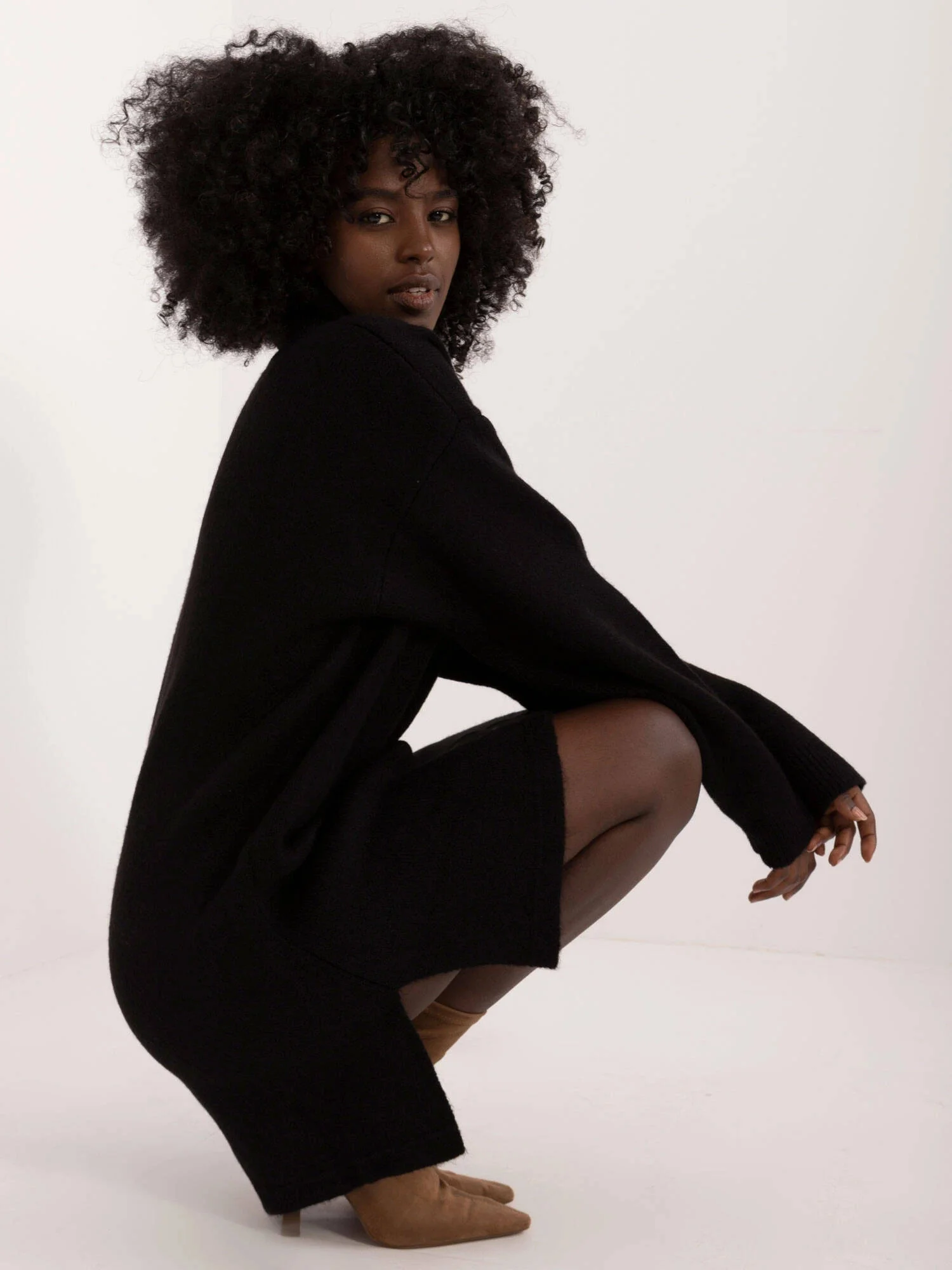 Černé látkové šaty s rolákem (0547)