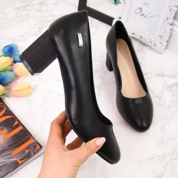 Černé lodičky Sergio Leone W SK314A s ozdobným sloupkem