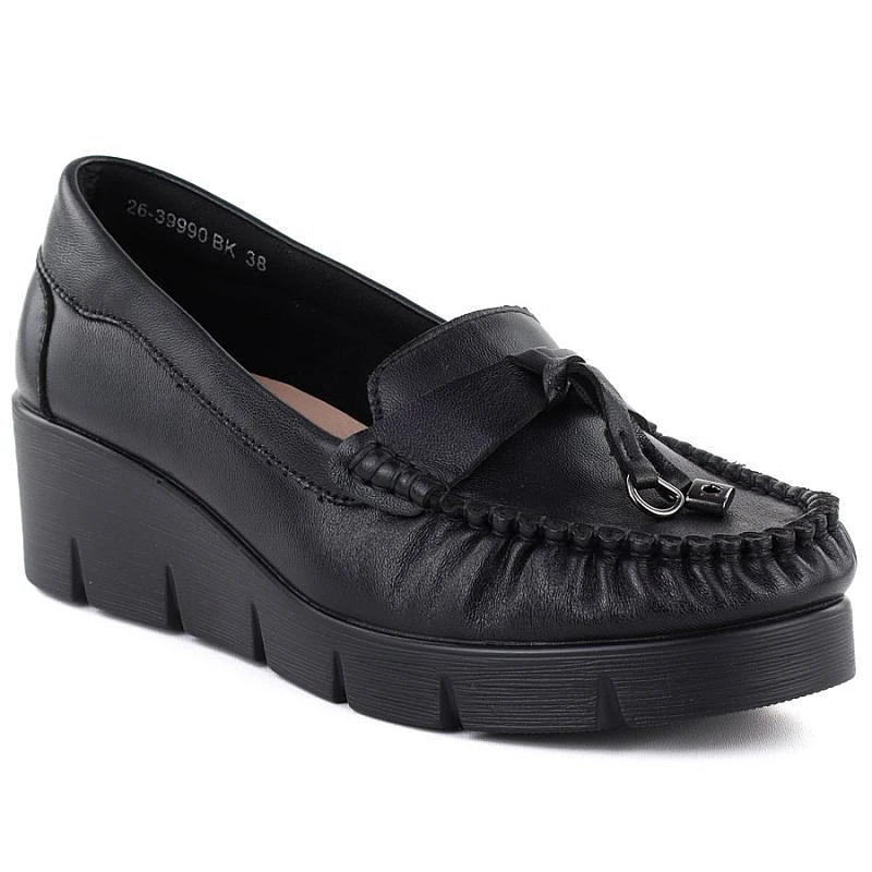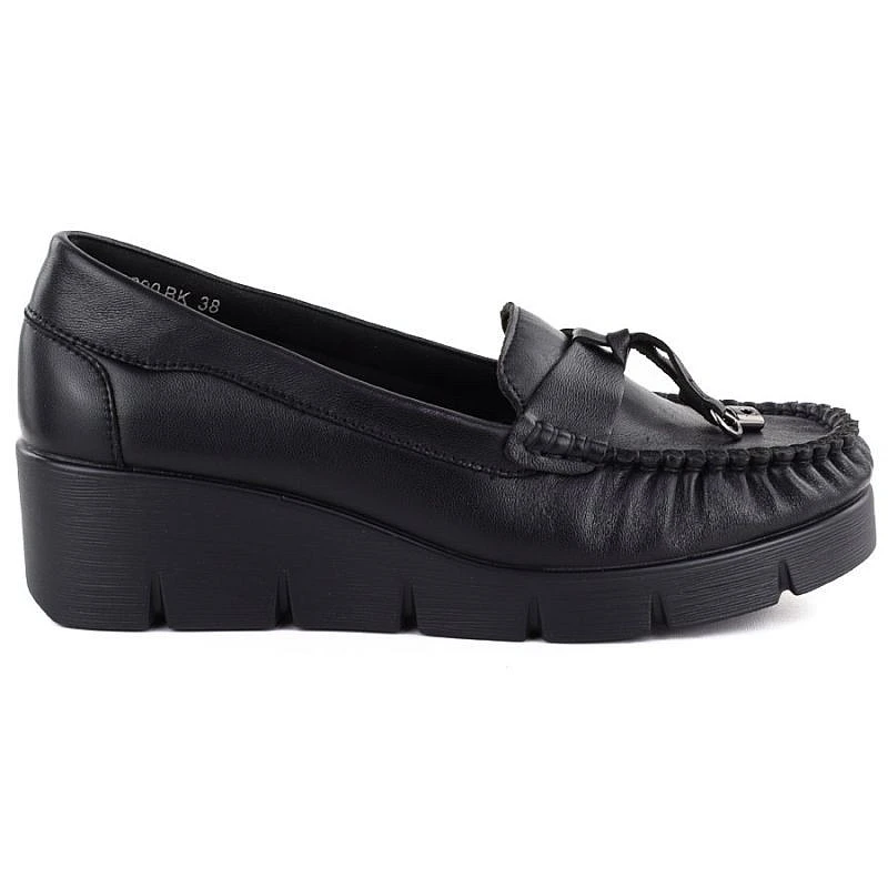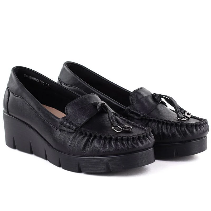 Černé mokasíny model 22068772 kožené polobotky na podpatku - VINCEZA