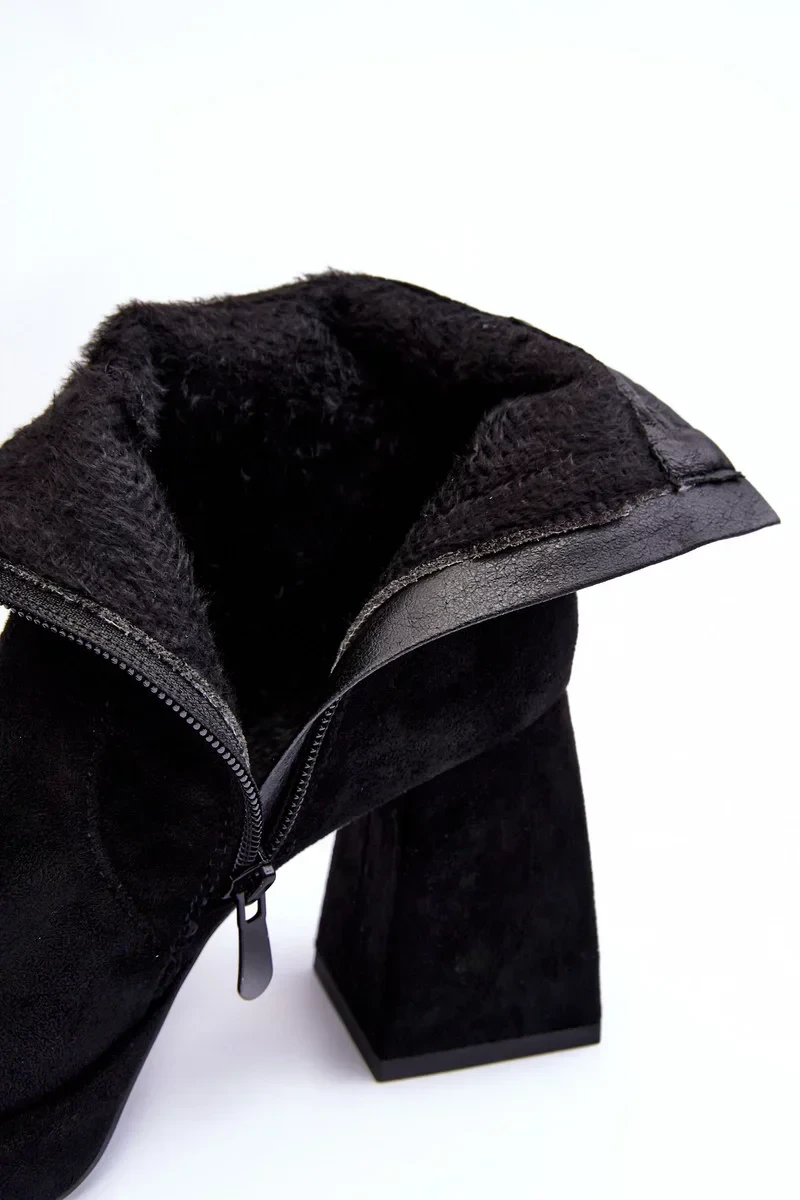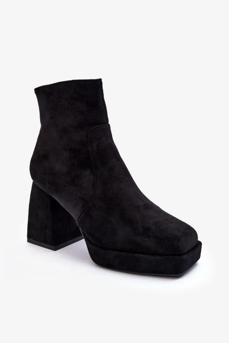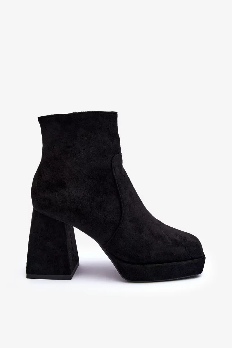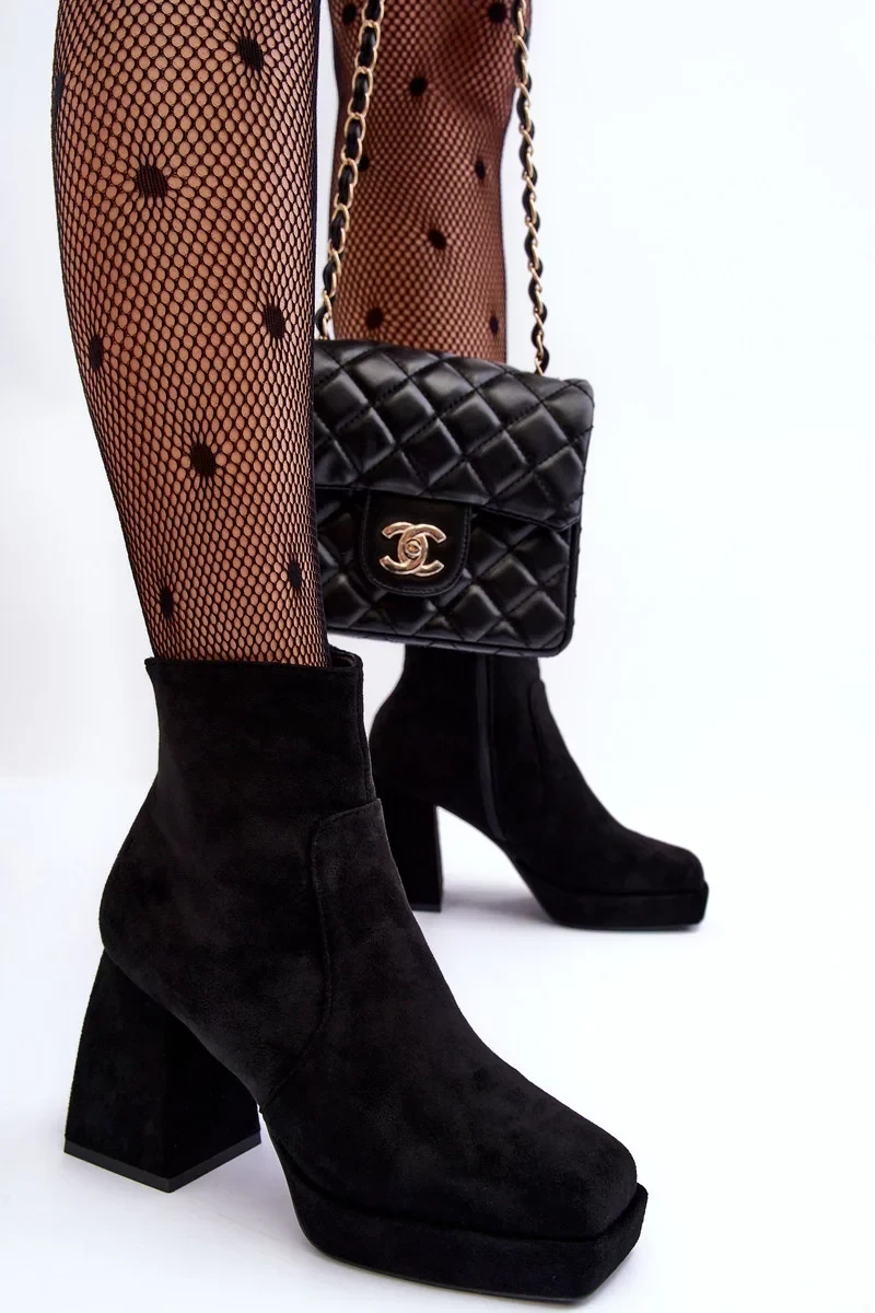 Černé semišové kotníkové boty s podpatky model 20020597 - Kesi