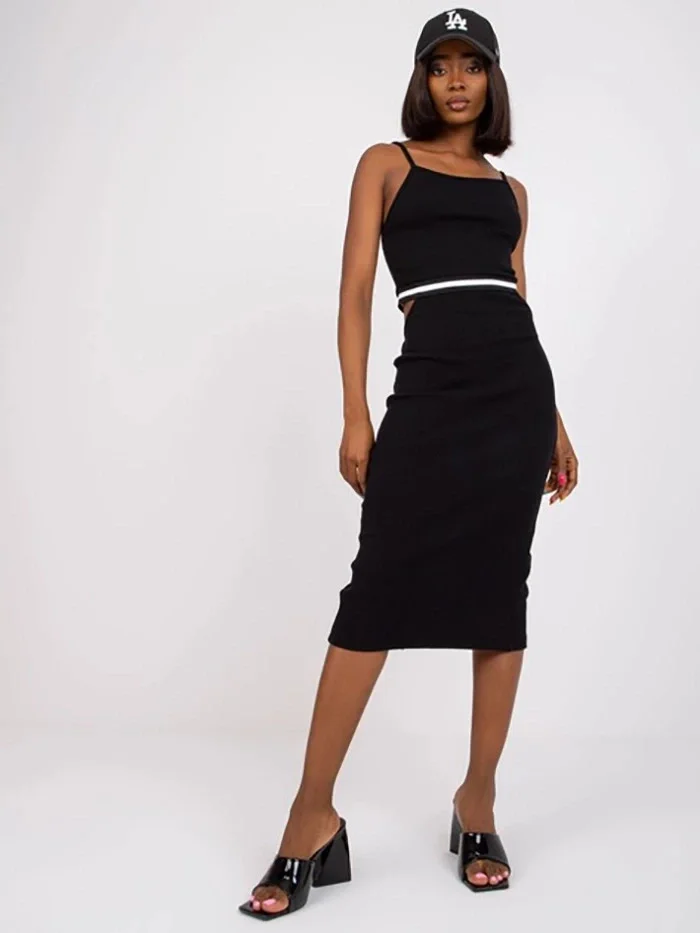 Černé žebrované šaty s vykrojeními Rue Paris (7686)