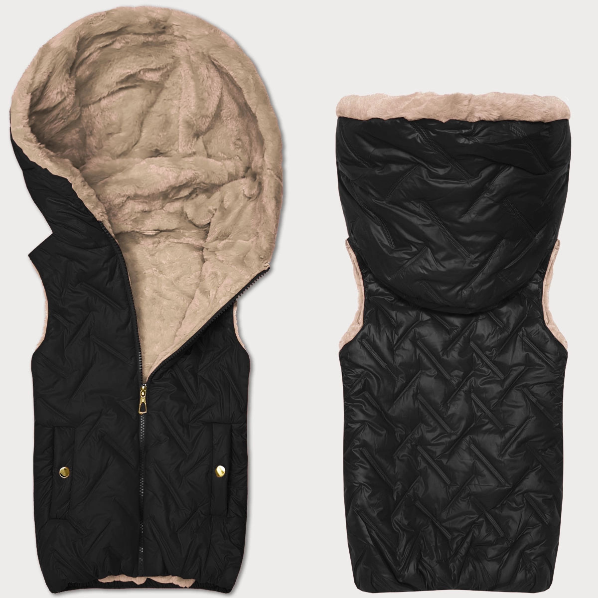 Přidání recenze k Černo-béžová dámská vesta s kožešinovou podšívkou S'West (B8252-1046)