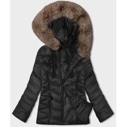 Černo-béžová krátká zimní bunda s kapucí (5M3138-392B)