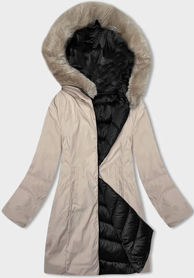 Černo-béžová oboustranná dámská zimní bunda s kapucí (B8203-1046)