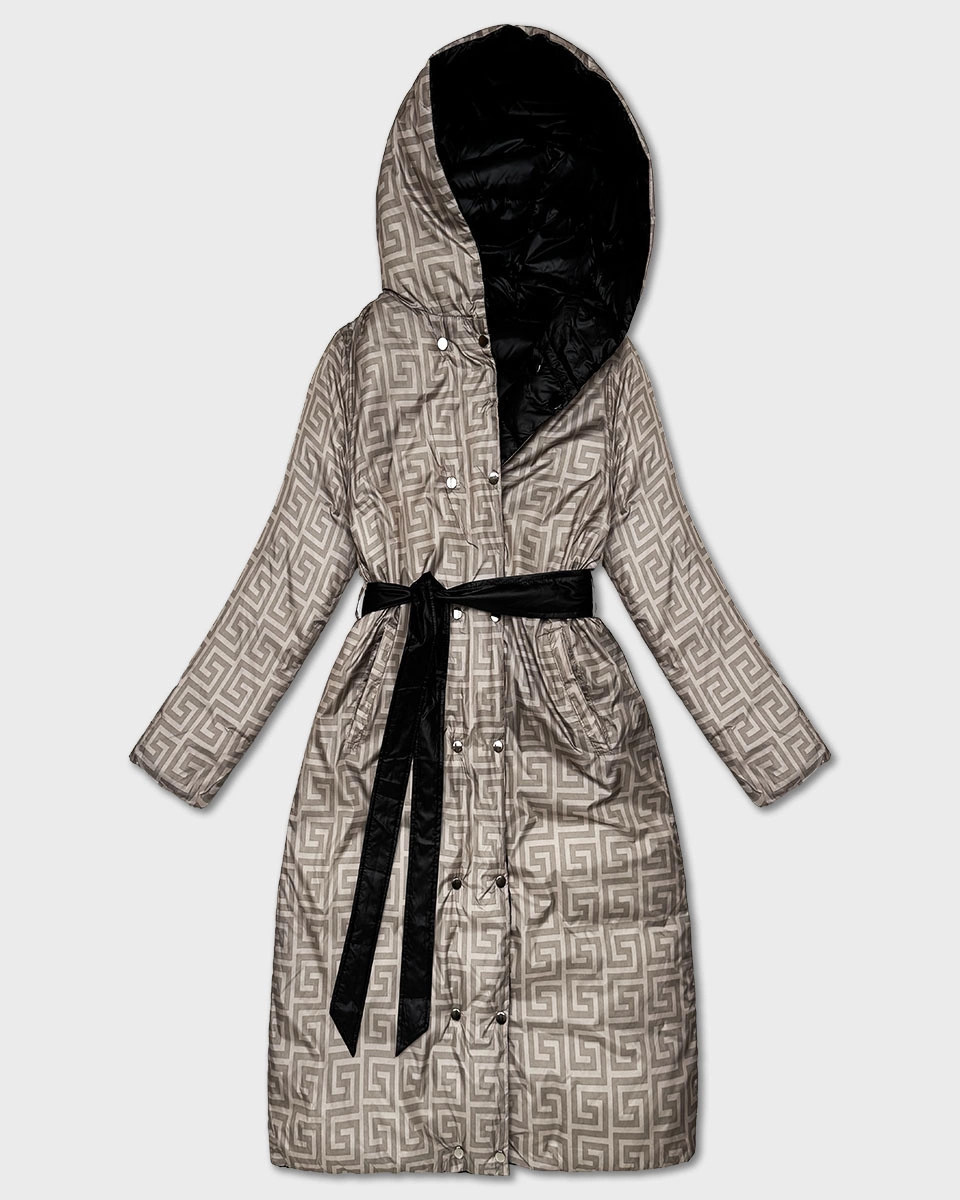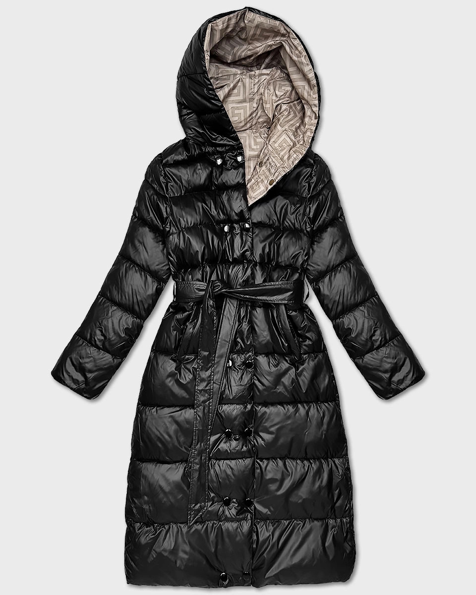 Černo/béžová oboustranná dlouhá bunda s kapucí (P22-6638-1+62)