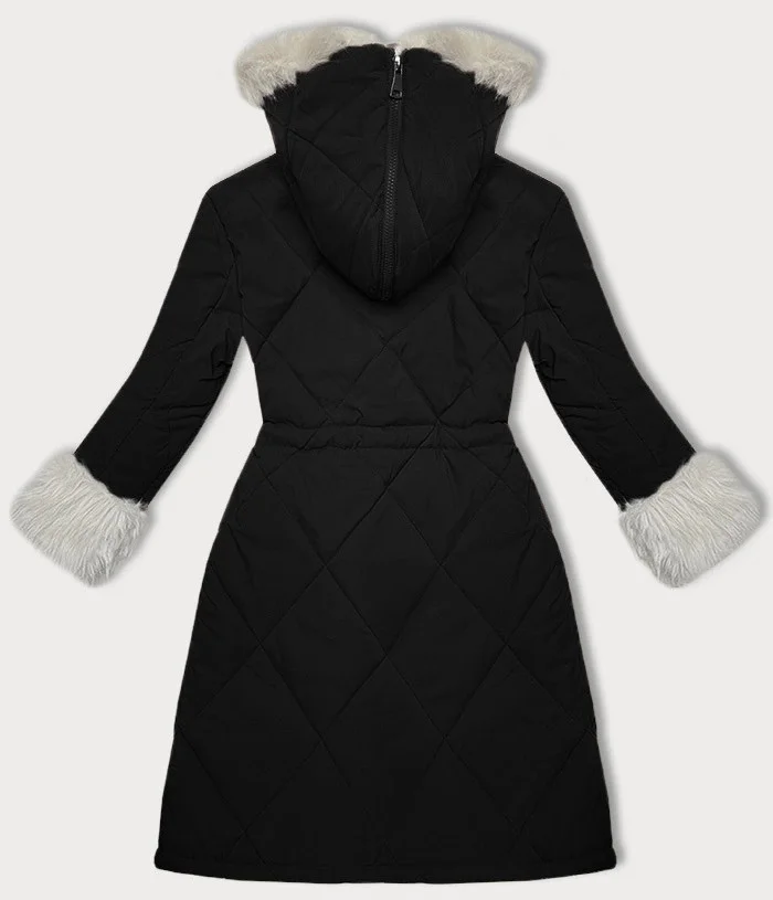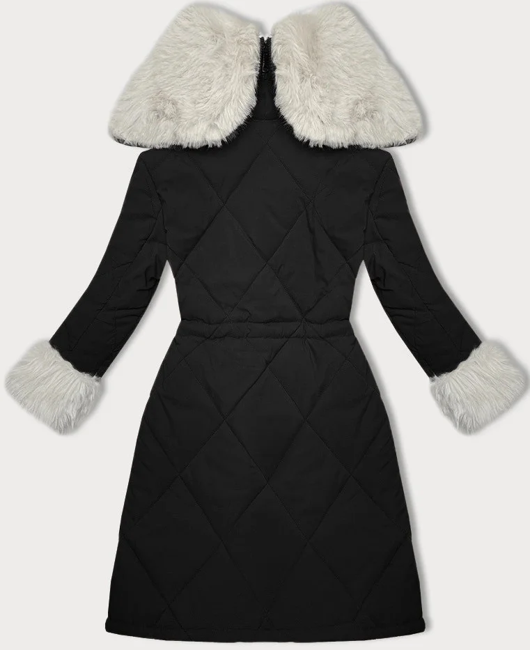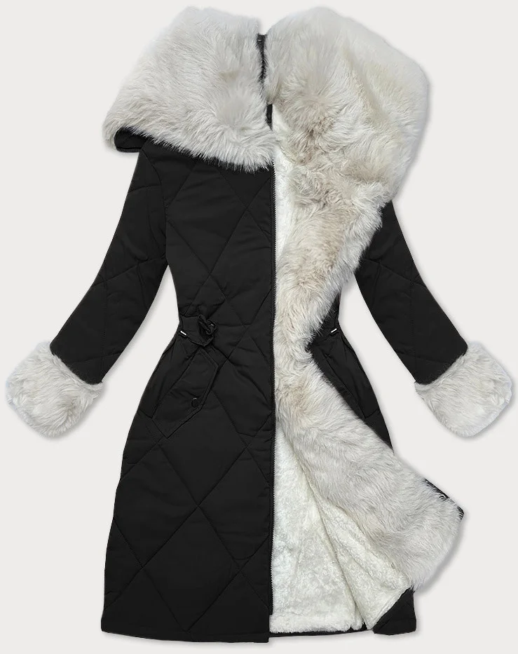 Černo-béžová prošívaná zimní bunda s kožešinovou podšívkou Way Mode (WD202308)
