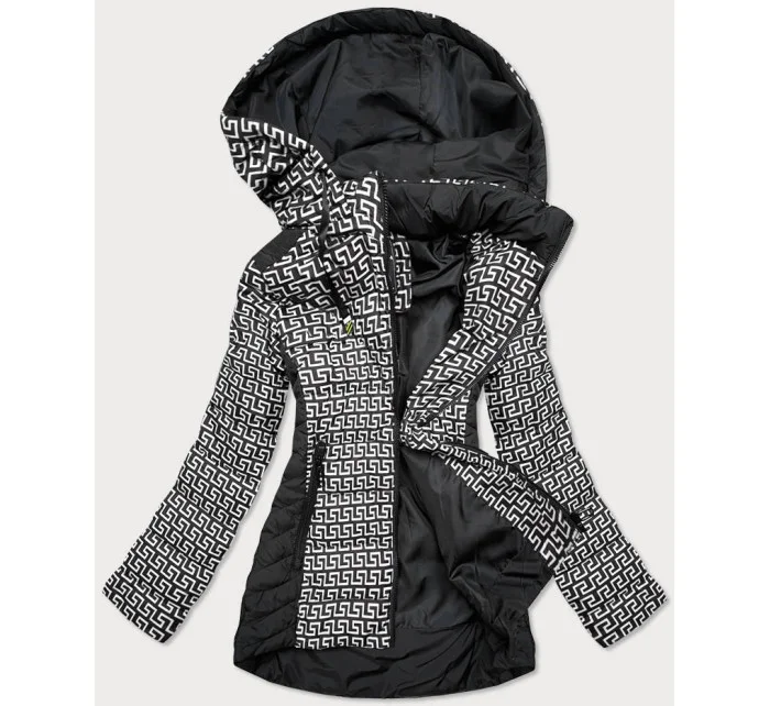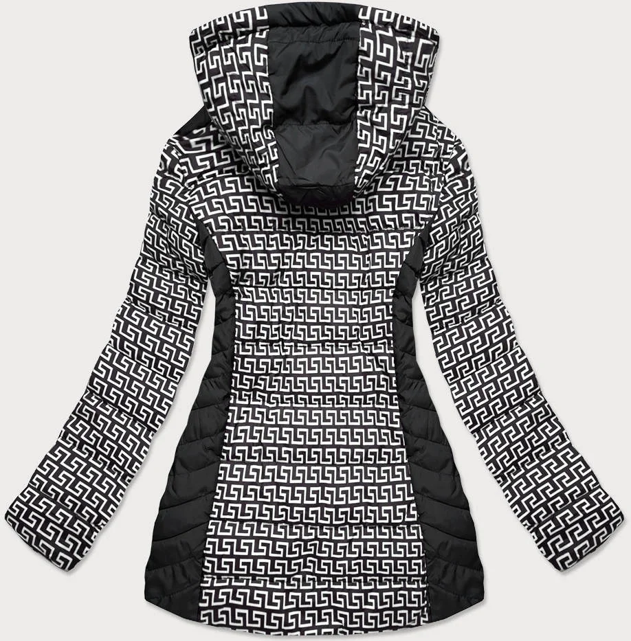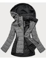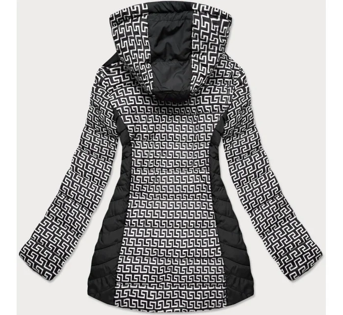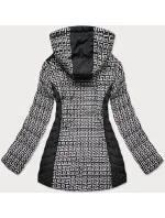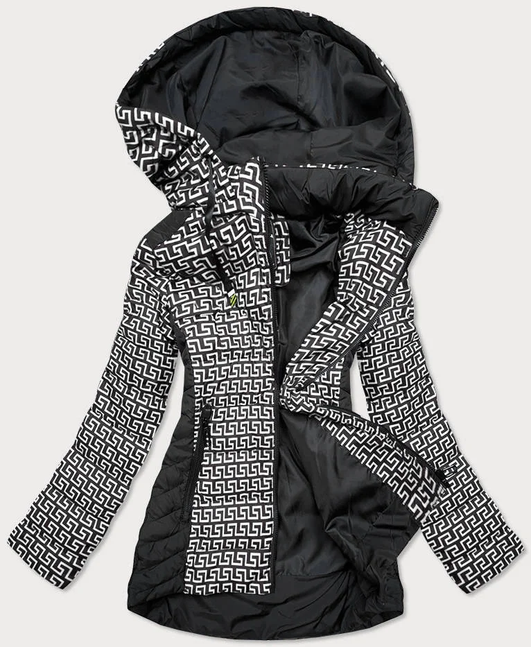 Černo-bílá vzorovaná dámská bunda s kapucí (W715)