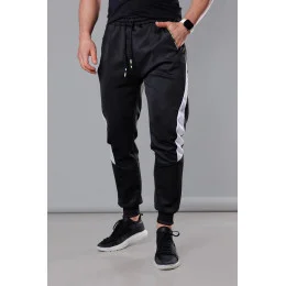 Černo-bílé pánské teplákové kalhoty se vsadkami (8K168)