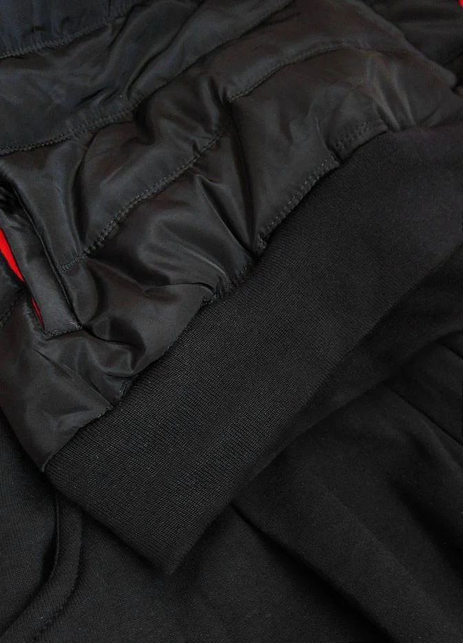 Mikina je vyrobená z různých spojených materiálů a obléká se přes hlavu. Model má kapuci se stahujícími šňůrkami. Mikina má dvě kapsy a krátký zip. Rukávy a spodní okraj modelu jsou olemované stahovacími lemy.