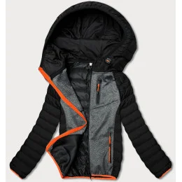 Černo-grafitová dámská sportovní bunda s neonovými vsadkami (8M911-392)