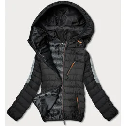 Černo-grafitová prošívaná dámská bunda s kapucí (8M912-392)