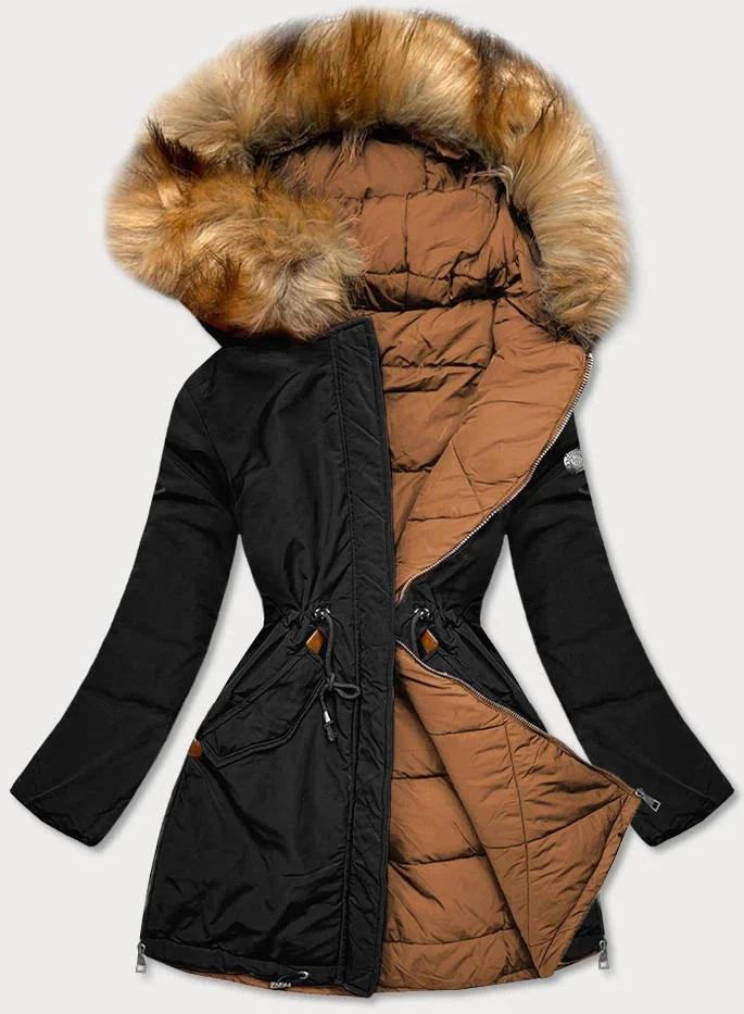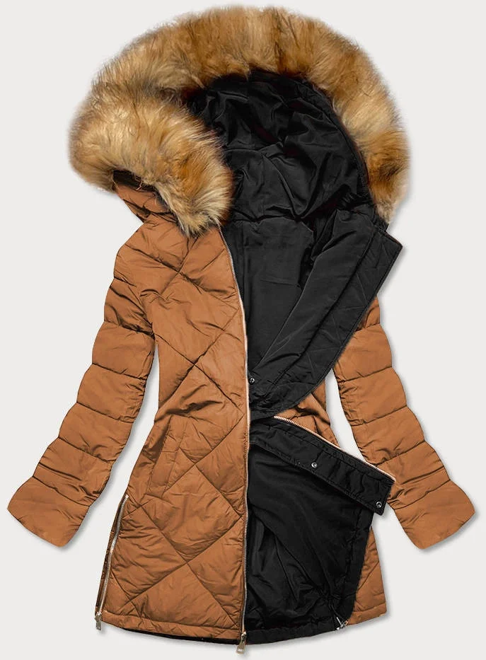 Černo-karamelová oboustranná dámská zimní bunda (m-210a5)