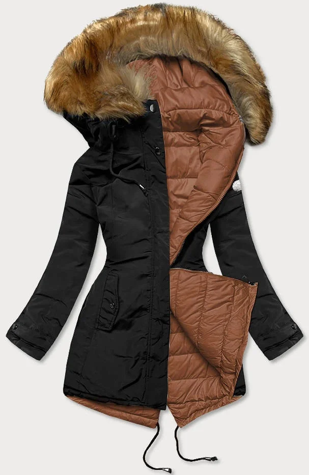 Přidání recenze k Černo-karamelová oboustranná dámská zimní bunda (m-21508)