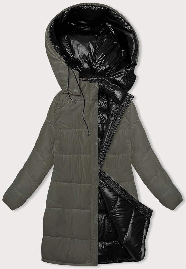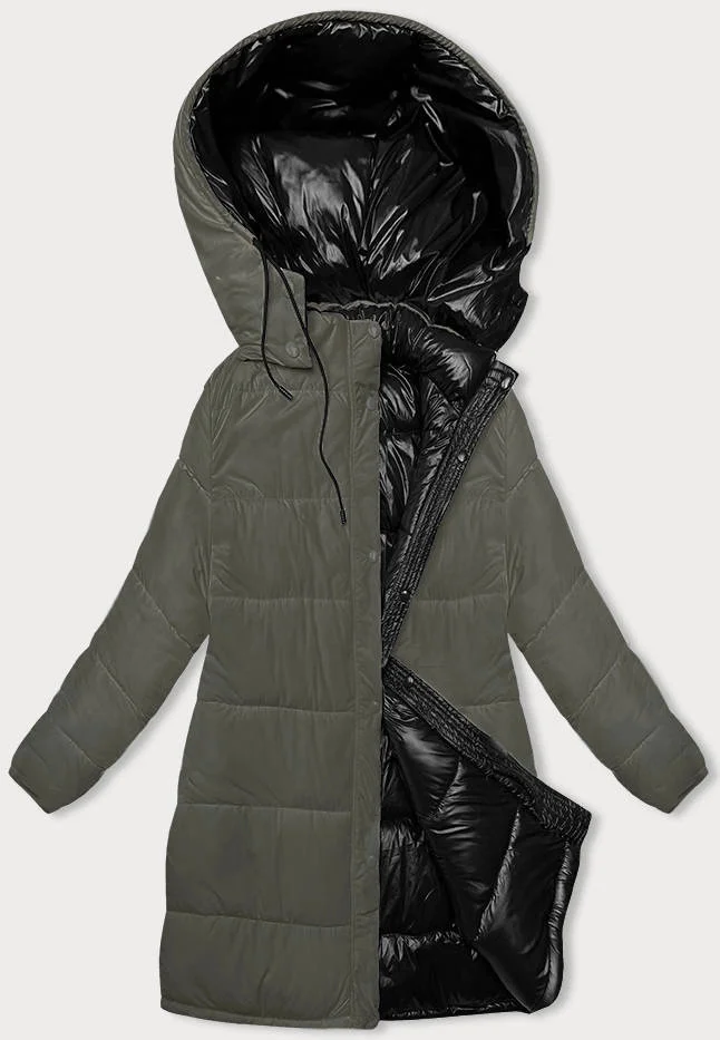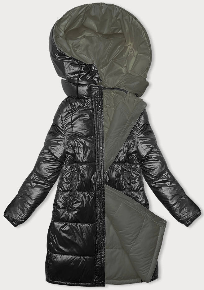 Černo-khaki hrubší oboustranná dámská zimní bunda (V768g)