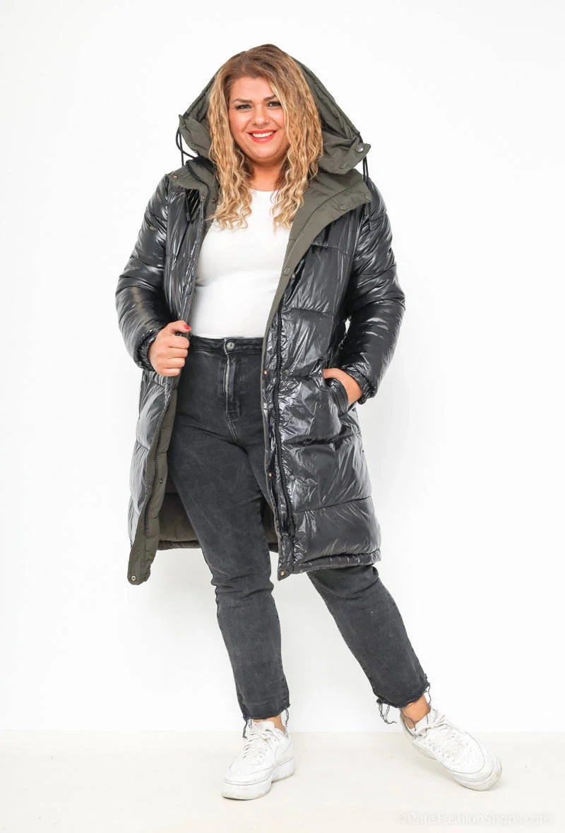 Přidání recenze k Černo-khaki hrubší oboustranná dámská zimní bunda (V768g)