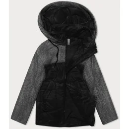 Černo-melanžová volná bunda s odepínací kapucí Vaston (SJ218-036#)