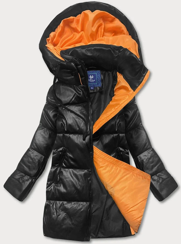Černo-oranžová volná dámská bunda z eko kůže (ag6-20b)