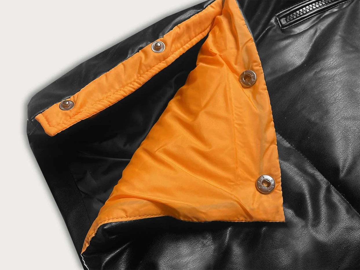 Černo-oranžová volná dámská bunda z eko kůže (ag6-21)