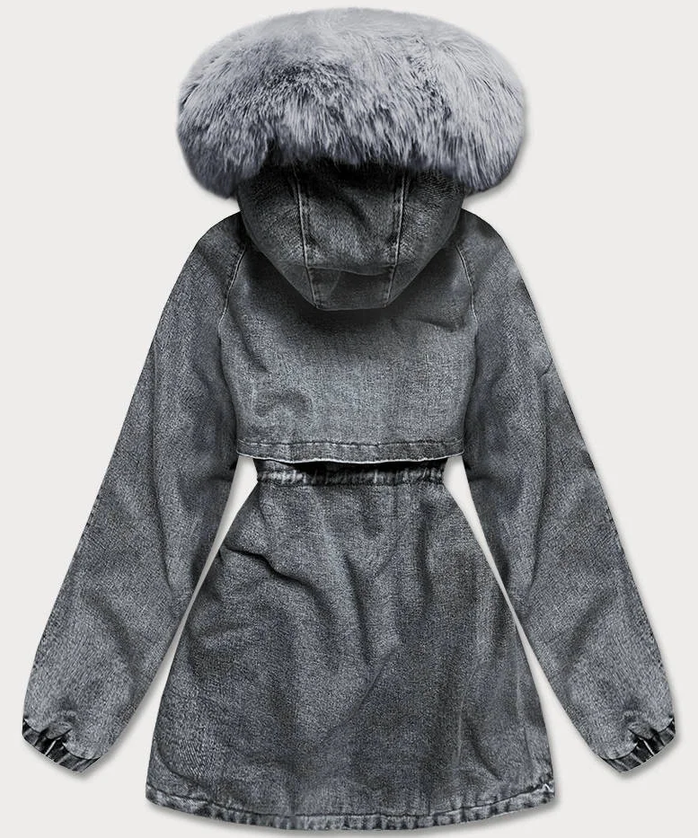 Černo/šedá dámská džínová bunda s kožešinovou podšívkou (br8048-109)