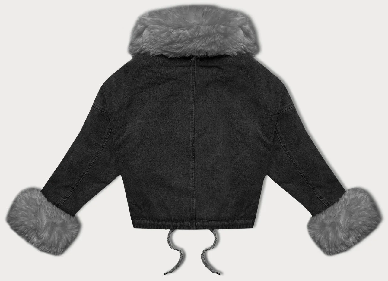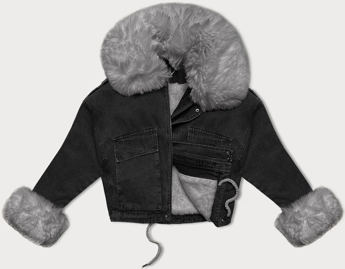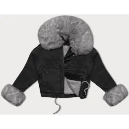 Černo/šedá krátká dámská džínová bunda s kožešinovou podšívkou J Style (11Z8219)