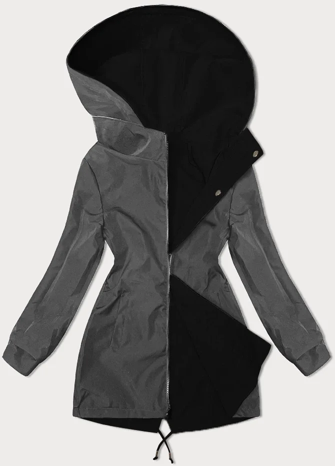 Černo-šedá tenká oboustranná dámská bunda parka (16M9081M-392C)