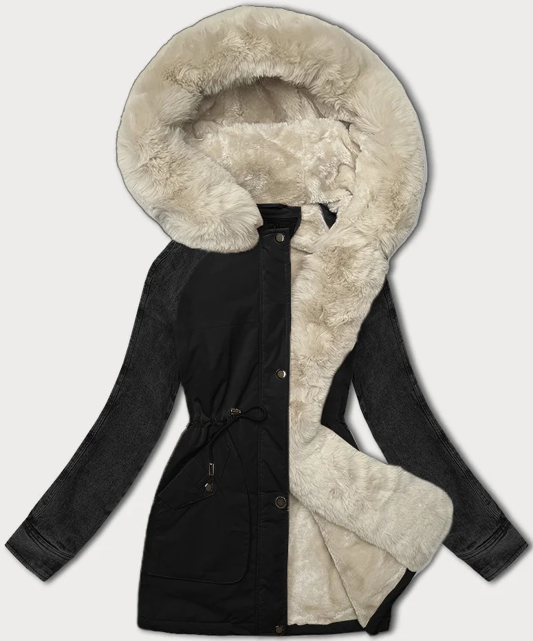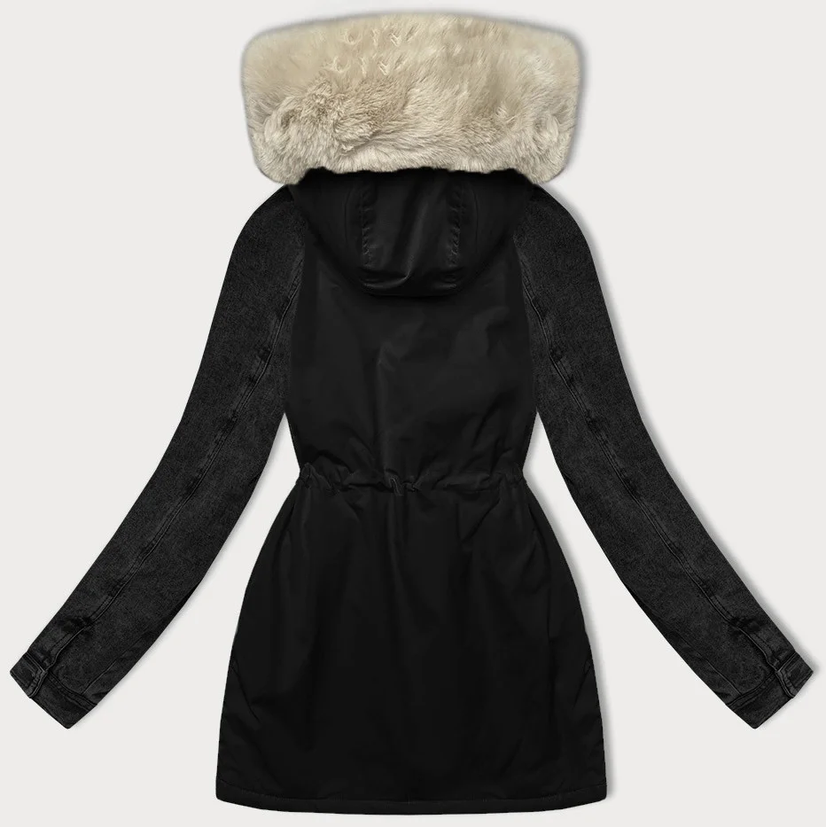 Černobéžová dámská bunda parka damska s rukávy model 21248835 - WAY MODE