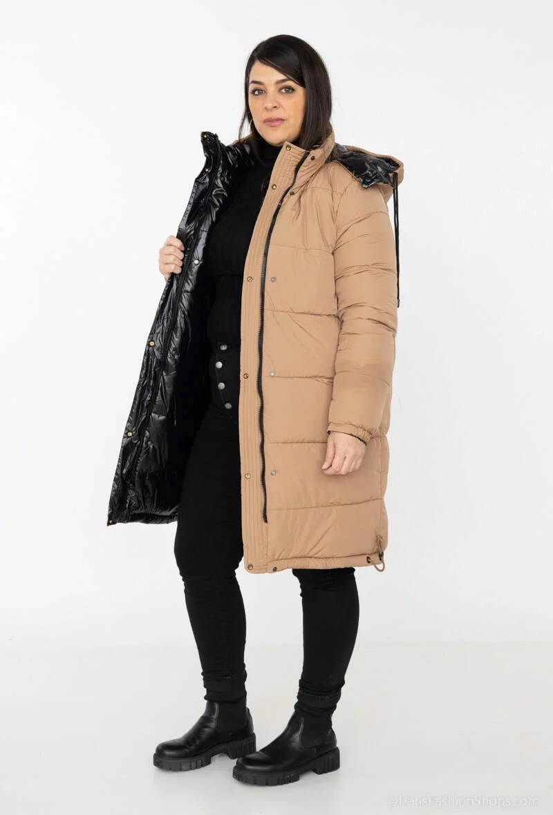 Přidání recenze k Černobéžová hrubší oboustranná dámská zimní bunda model 21247459 - MELYA MELODY