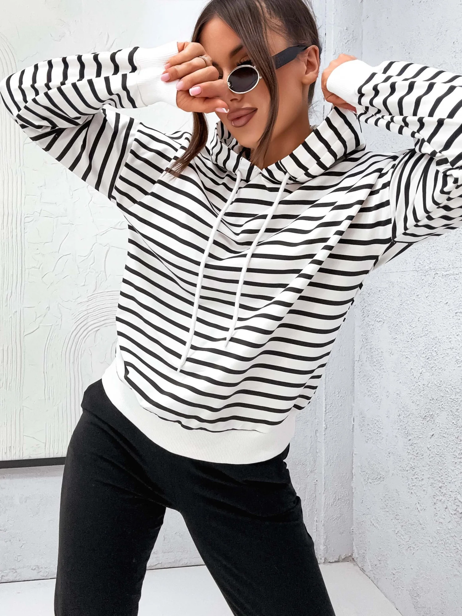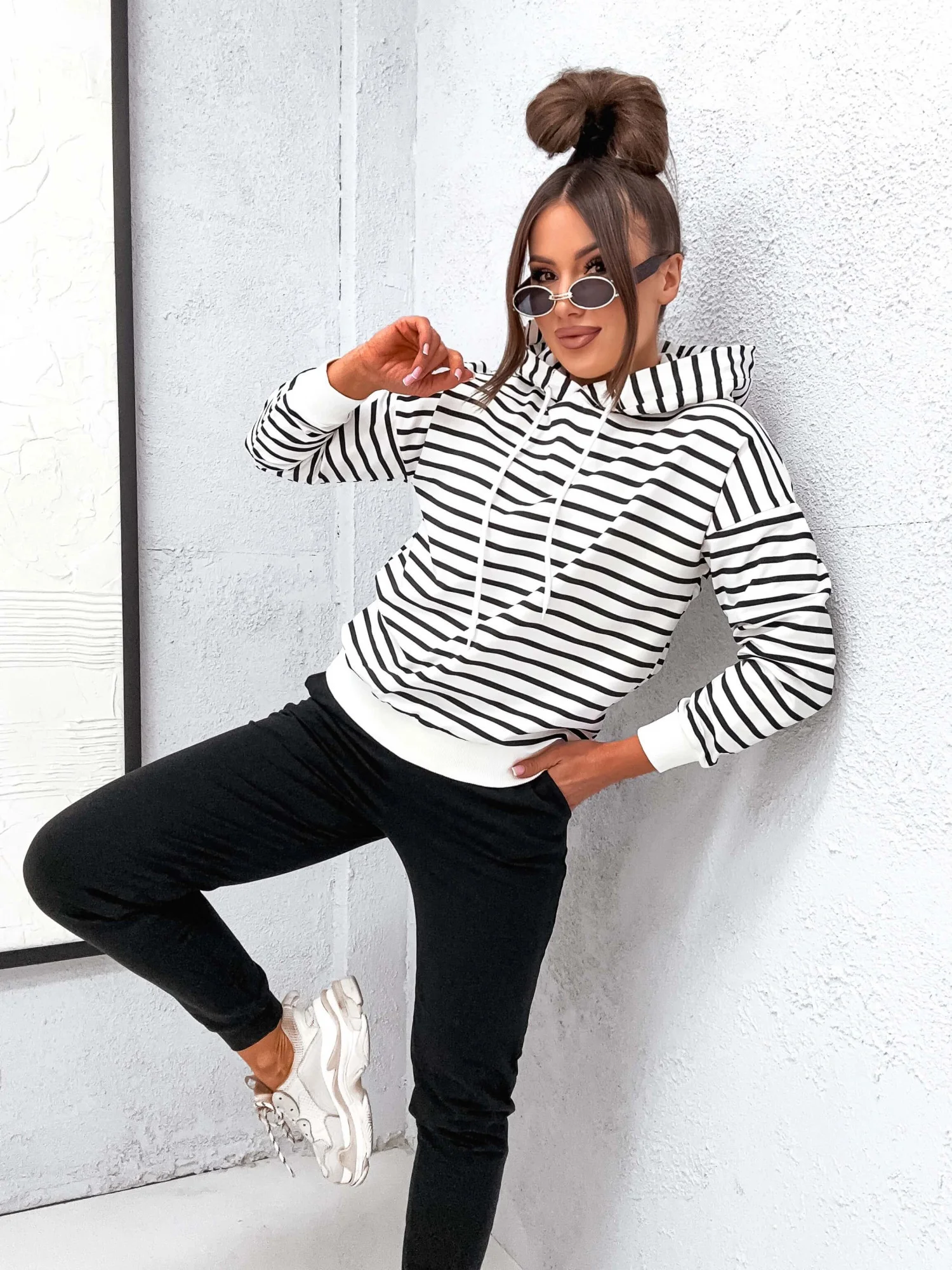 Přidání recenze k Černý bavlněný dámský teplákový komplet s pruhovanou mikinou (82173)