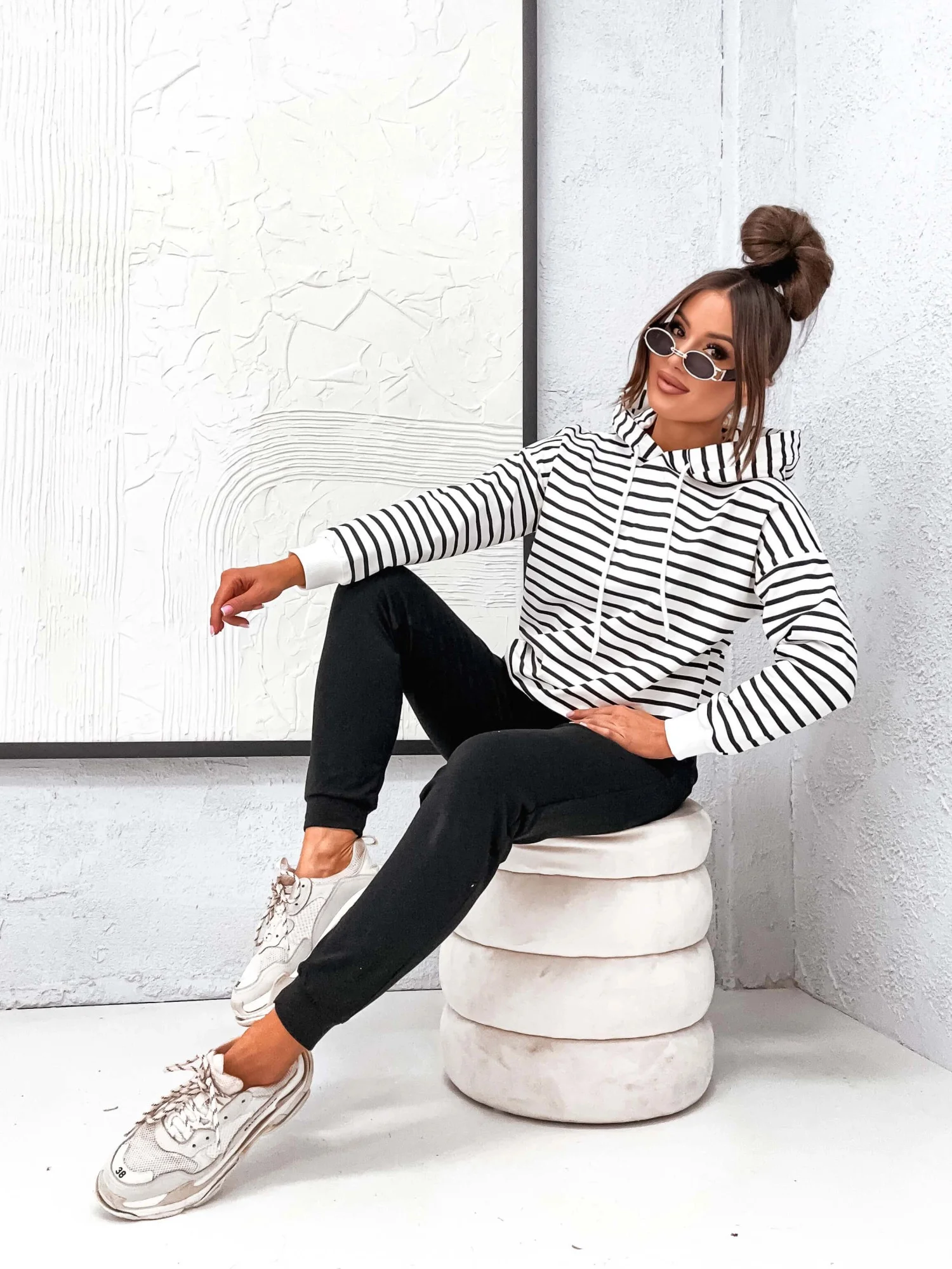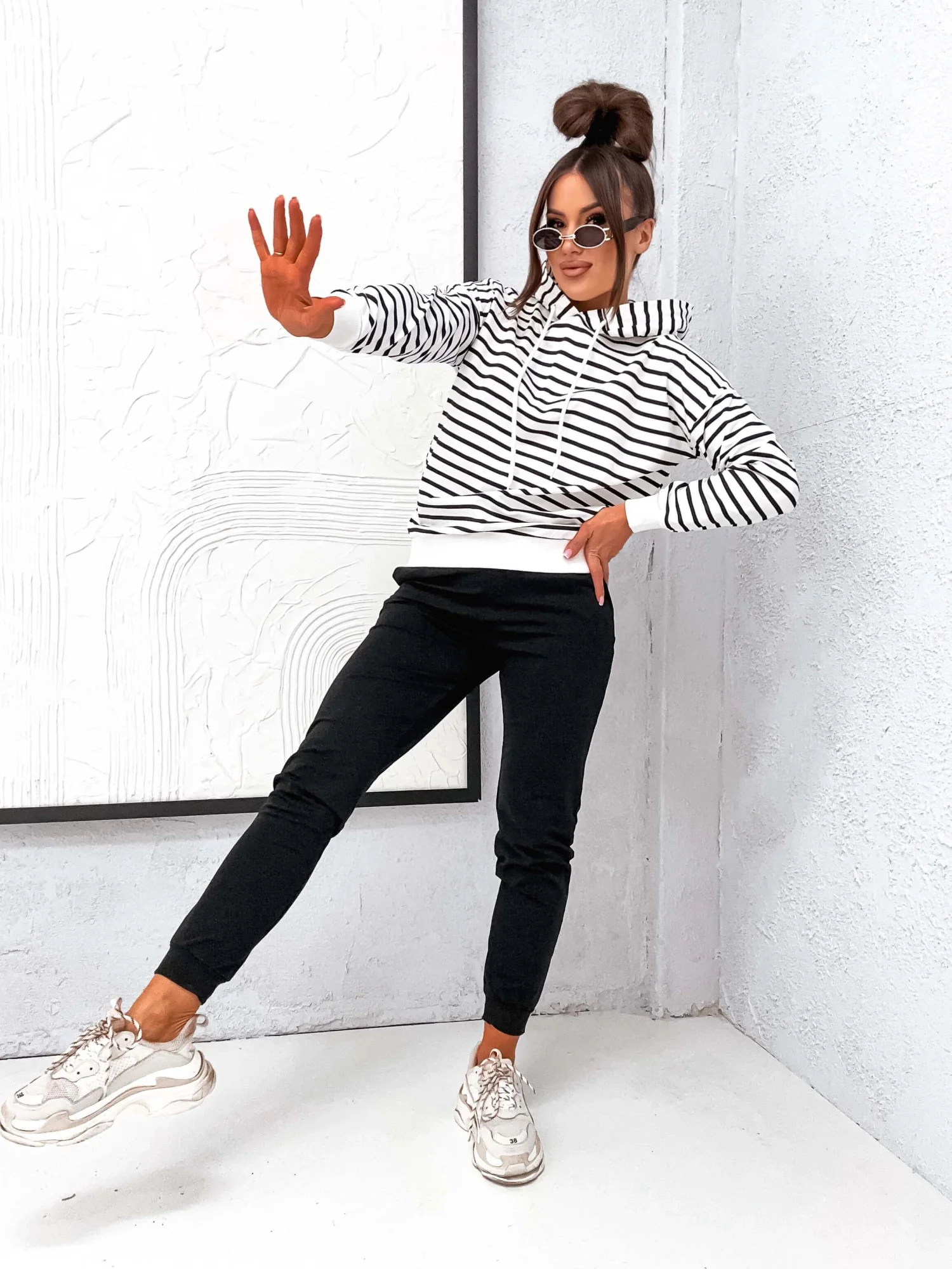 Černý bavlněný dámský teplákový komplet s pruhovanou mikinou (82173)