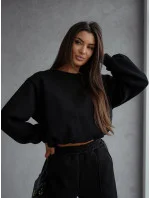 Přidání recenze k Černý dámský bavlněný teplákový komplet s krátkou mikinou (82160)