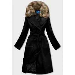 Černý dámský kabát s kožíškem (SASKIA)
