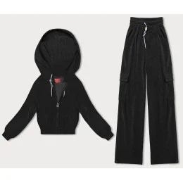 Černý dámský komplet - mikina a kalhoty typu cargo (AMG-322A)
