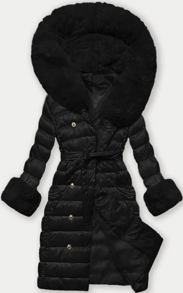 Černý dámský péřový kabát se zapínáním na knoflíky model 21248466 - J.STYLE