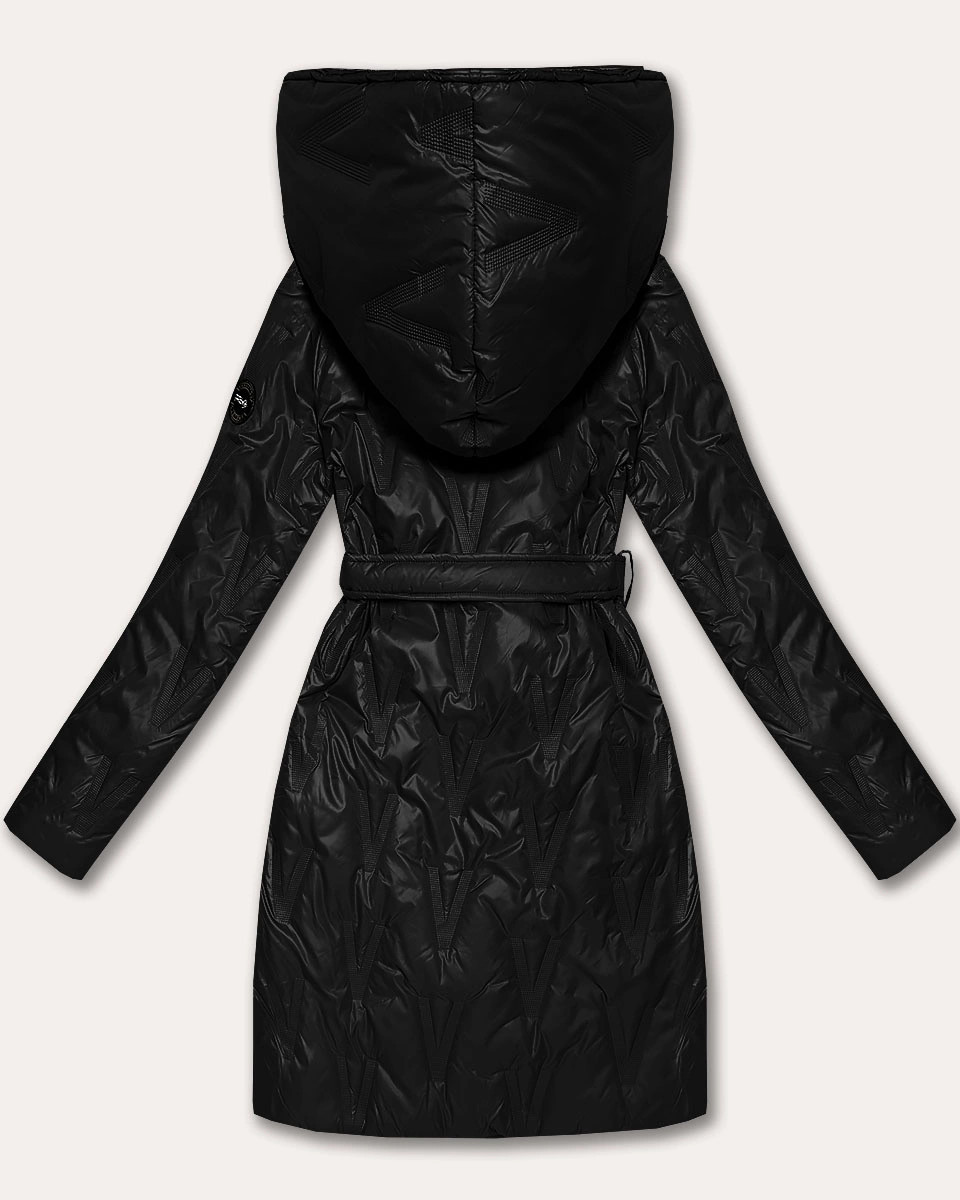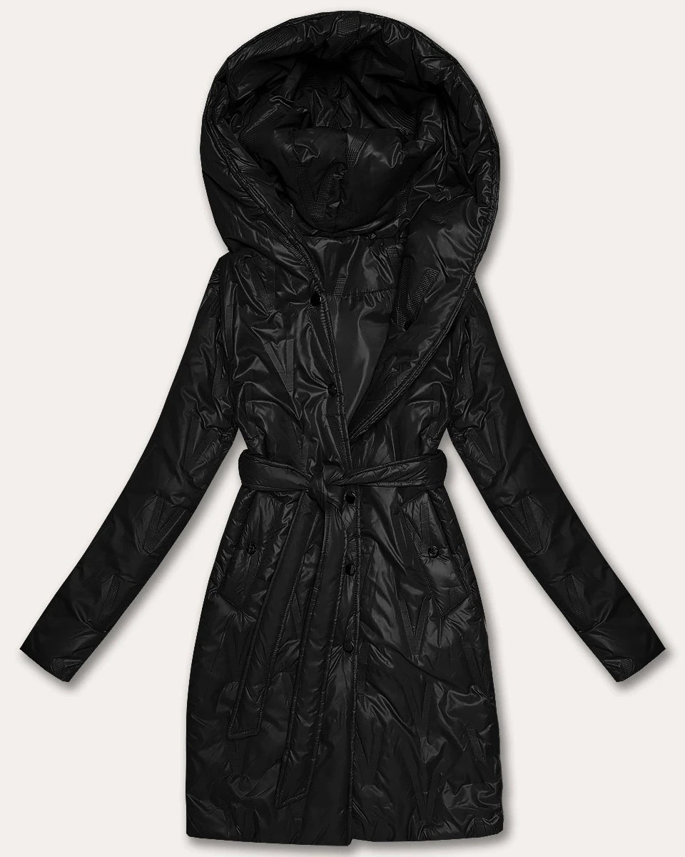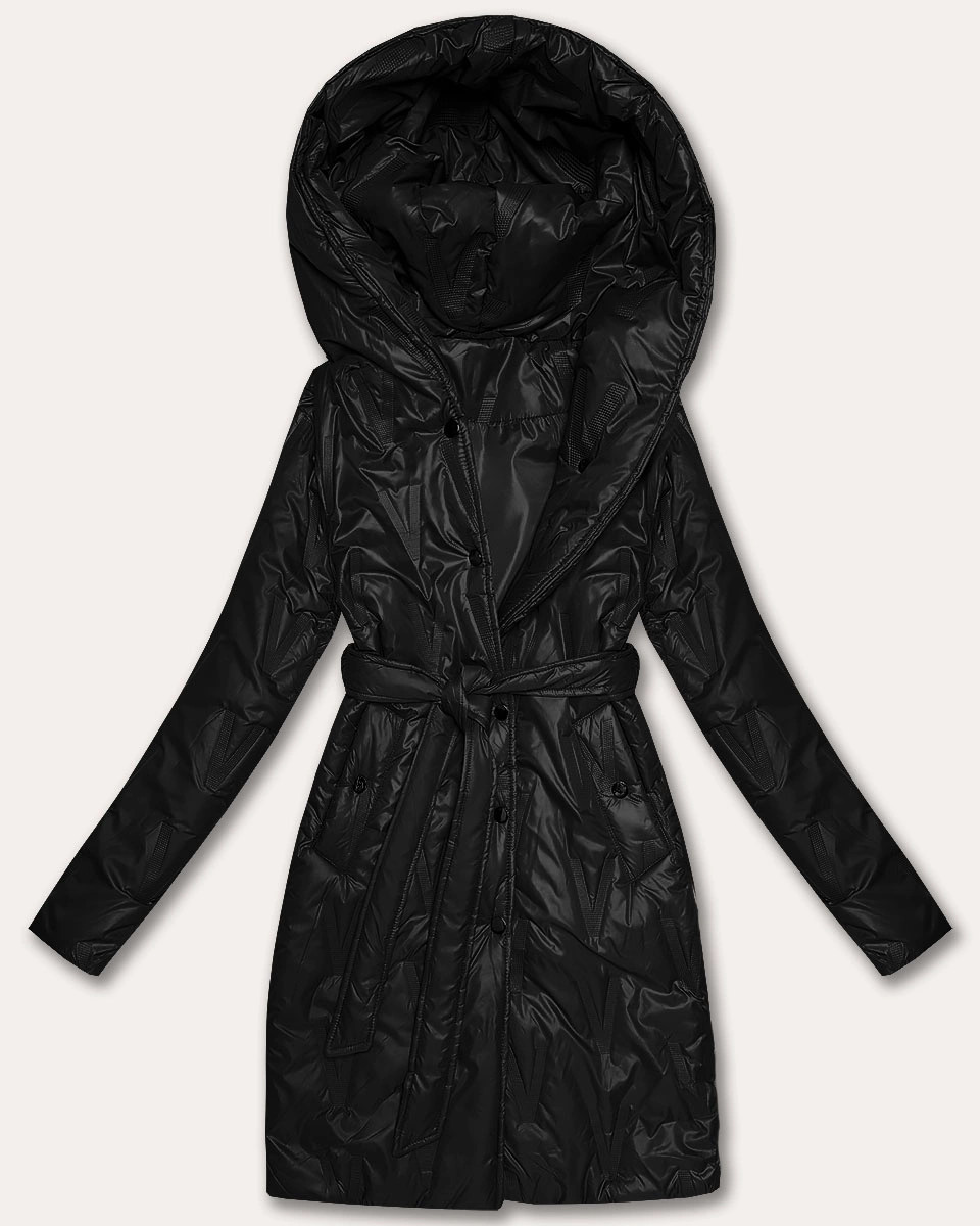 Černý dámský prošívaný kabát s páskem S'West (B8508-1)
