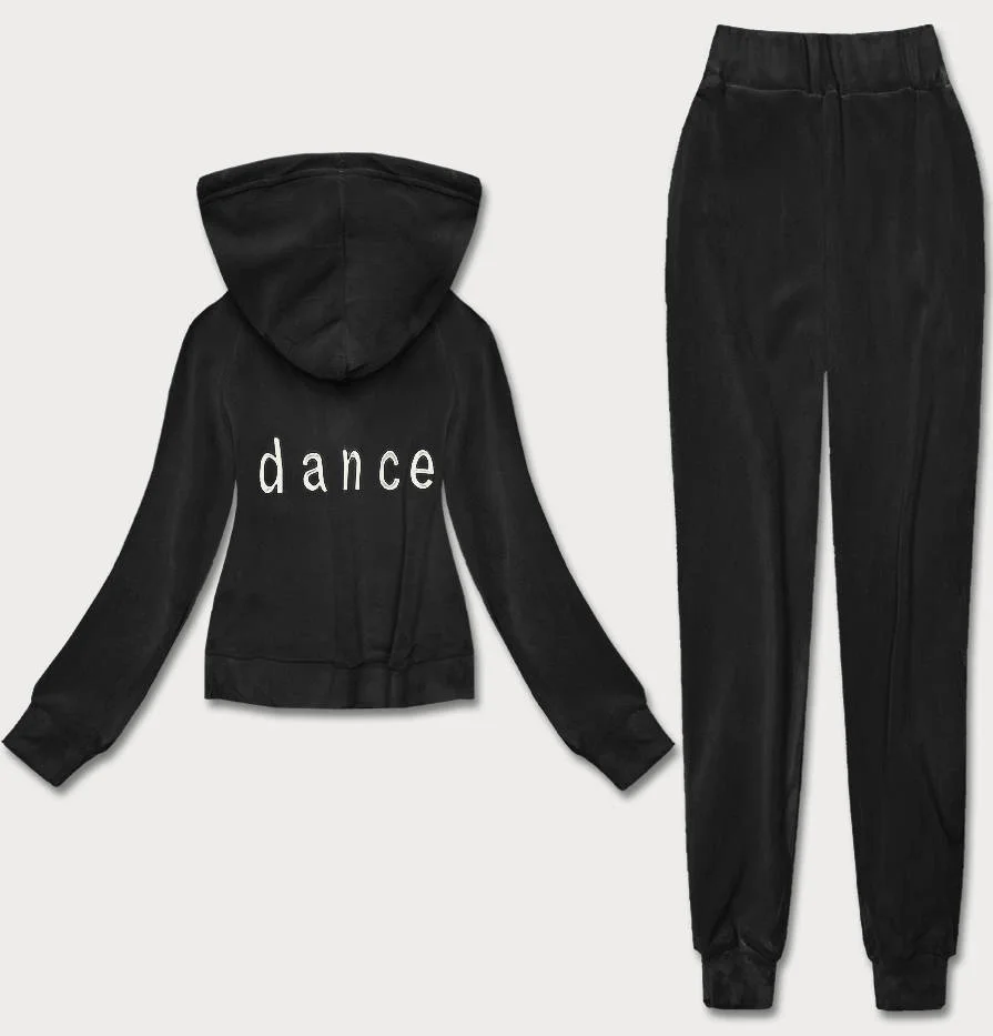 Dámský komplet, který se skládá z mikiny a teplákových kalhot.