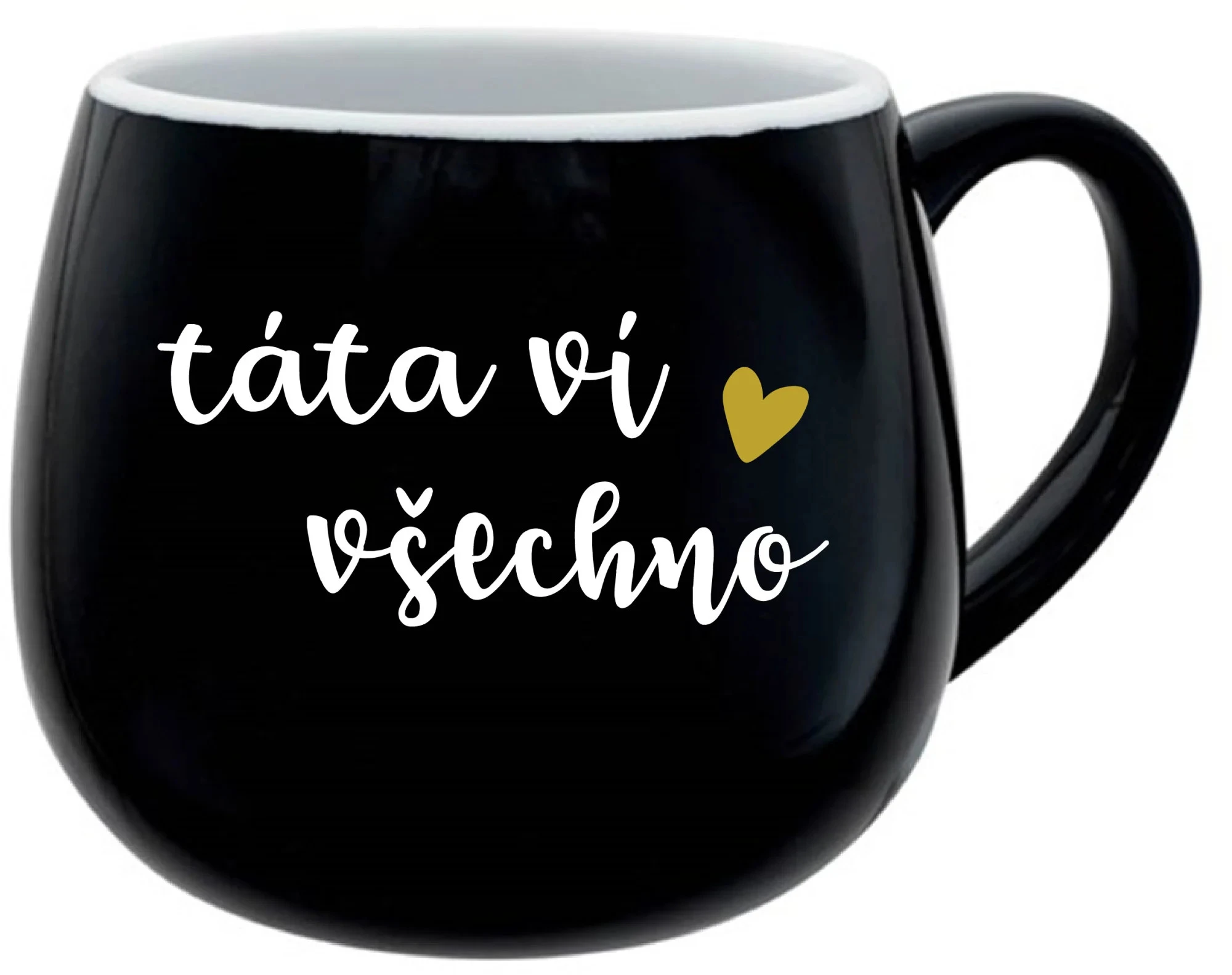 Veselý Buclák Hrnek pro Každý Den - Smích a Pohoda v Každém Doušku Představujeme vám naše nové hrnky bucláky, které jsou ideální pro každého, kdo miluje špetku humoru v každém dni! S objemem 300 ml jsou tyto hrnky perfektně navrženy pro vaši ranní kávu, večerní čaj nebo jakýkoliv oblíbený nápoj, který Vás zahřeje a dodá energii. Každý z těchto hrnků nese vtipný nápis TÁTA VÍ VŠECHNO, který je zaručeně vykouzlí úsměv na tváři vás i vašich návštěv. Ať už jde o pobavení nad ranní kávou nebo sdílení smíchu s přáteli, tyto hrnky jsou skvělým doplňkem pro vaši domácnost. Nejenže jsou naše bucláky hrnky skvělým způsobem, jak si zpříjemnit den, ale jsou také vyrobeny s ohledem na kvalitu a trvanlivost. Ideální pro každodenní použití, jsou tyto hrnky robustní a zároveň příjemné na dotek. Udělejte si radost nebo obdarujte své blízké těmito originálními a veselými bucláky. Objednejte si je nyní a dopřejte si každý den trochu více radosti a pohody! Doporučujeme ruční mytí tohoto produktu pro zachování jeho kvality a trvanlivosti. Nedoporučujeme umisťovat do myčky na nádobí.