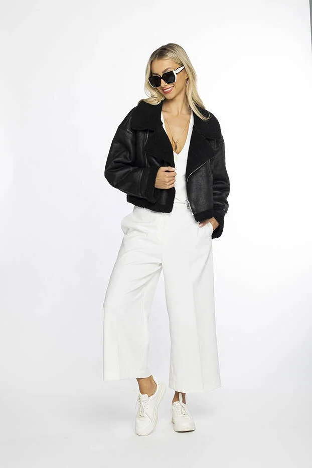 Kožich má uvnitř kožešinovou podšívku, má dvě kapsy bez zapínání a zapíná se zipem. Model má délku do pasu.