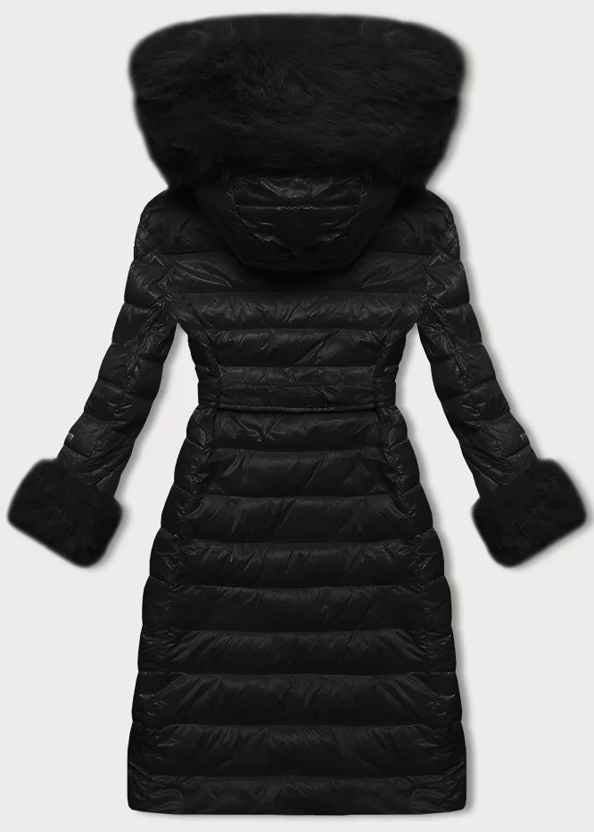 Černý péřový dámský kabát se zapínáním na knoflíky (5M3160/1-392)